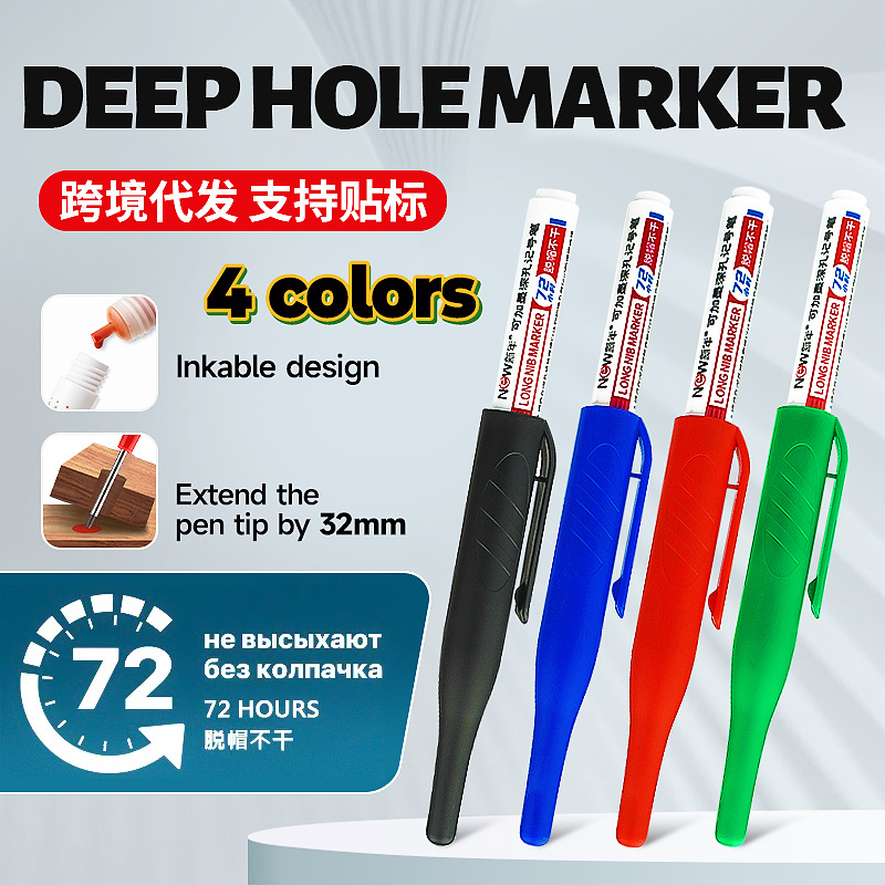 長頭マーカー32mm深穴木工穴あけタイルマーキングペン油性速乾防水色落ちなしインク入れ可能