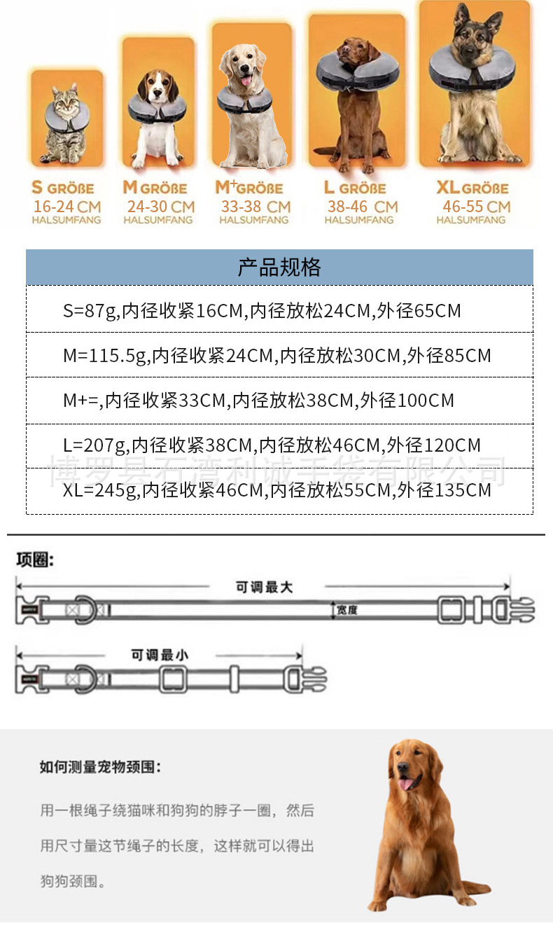 现货批发 中大型犬伊丽莎白圈 充气内胆可拆洗布套可调节透气软圈