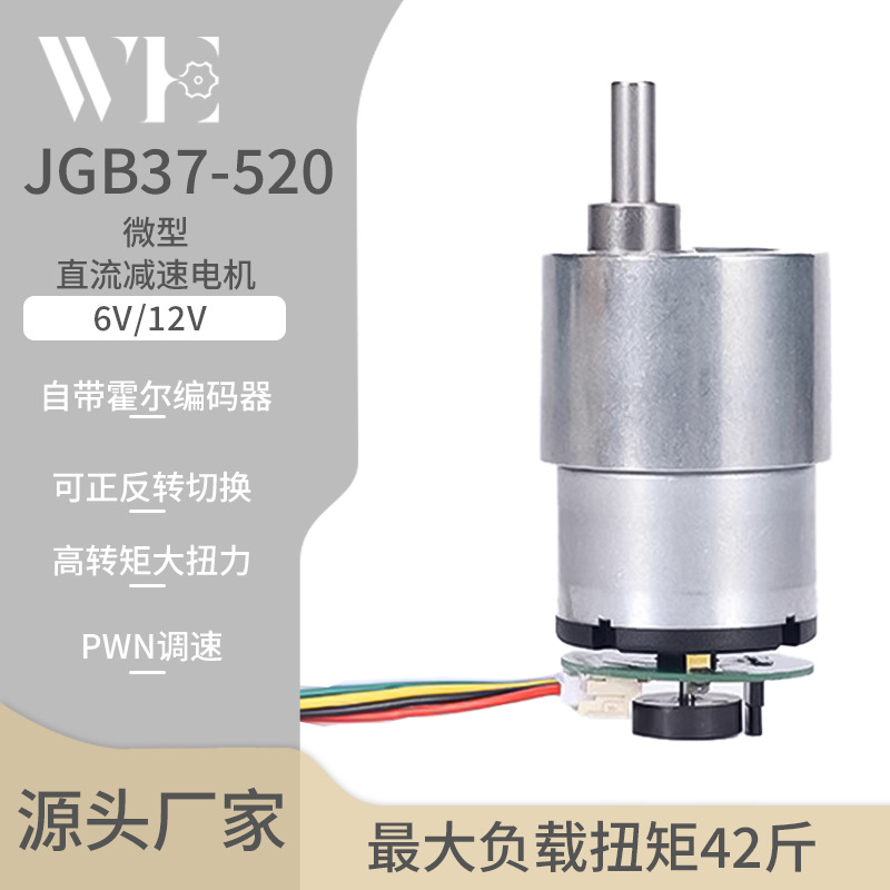 ホールエンコーダ付き直流減速モータ6v12v調速正逆転JGB37-520低速小型モータ