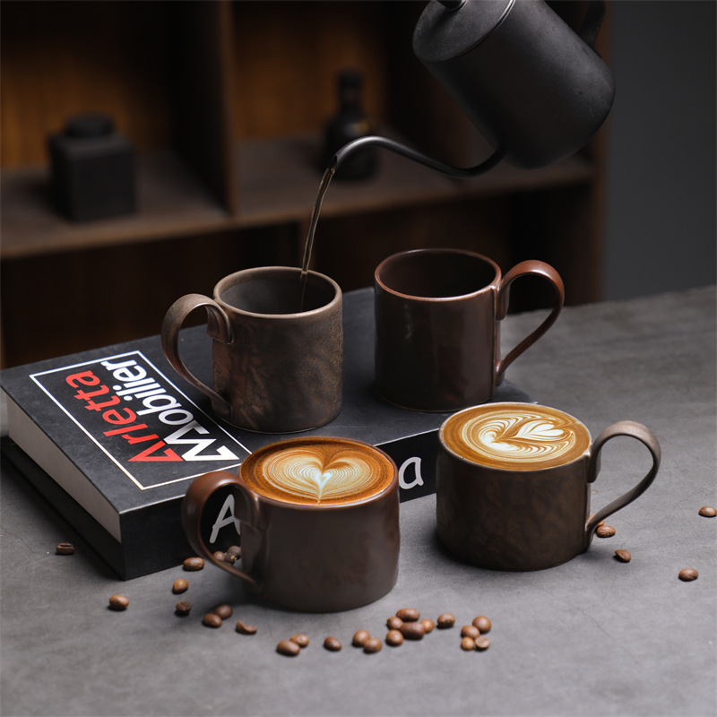 レトロ陶磁コーヒーカップ高颜値カップルカップ粗陶昼寝マグカップ越境中東朝食カップ
