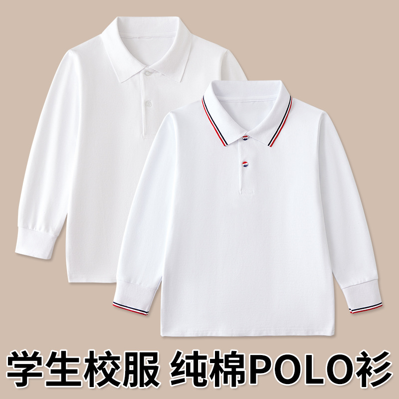儿童Polo衫长袖纯白色撞领中小学生伊顿翻领校服春秋男童女童T恤