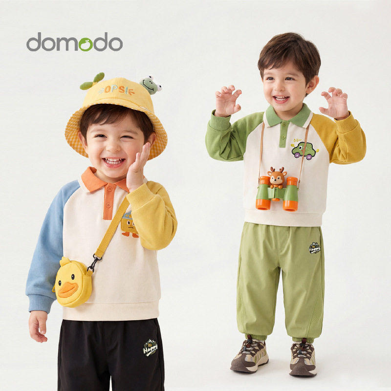 小布熊子供用スウェットシャツ25秋冬新作男女兼用両面フリースインナーシャツベビー用ハンサムな襟付きポロシャツ