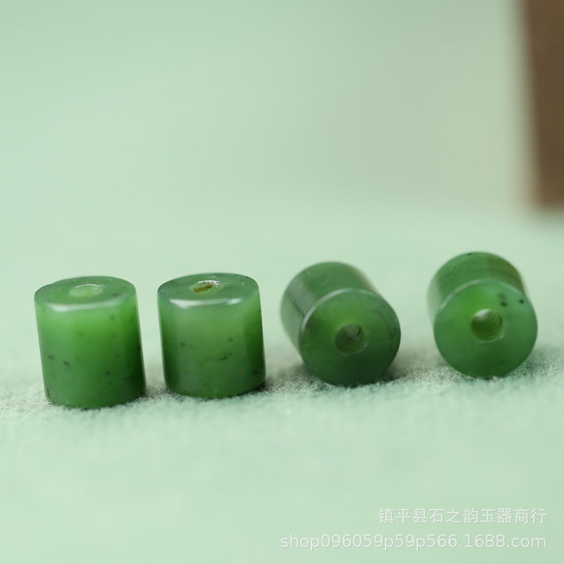 天然新疆和田玉碧玉约10mm孔3mm小桶珠IY配饰佛珠饰品半成品A206