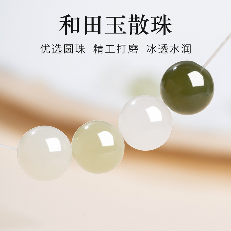 和田玉青海材料グラデーション色6m単輪ボール手串diy部品散珠ブレスレット玉アクセサリー卸売り