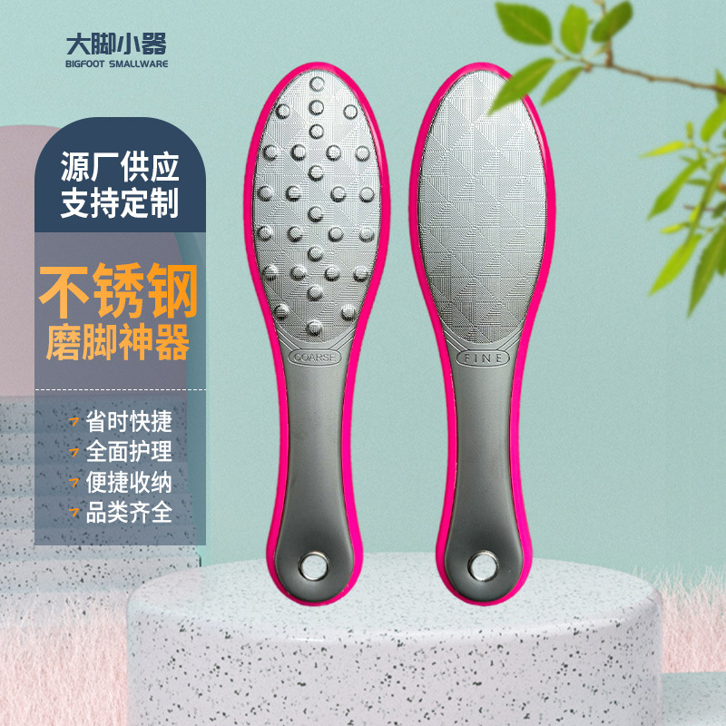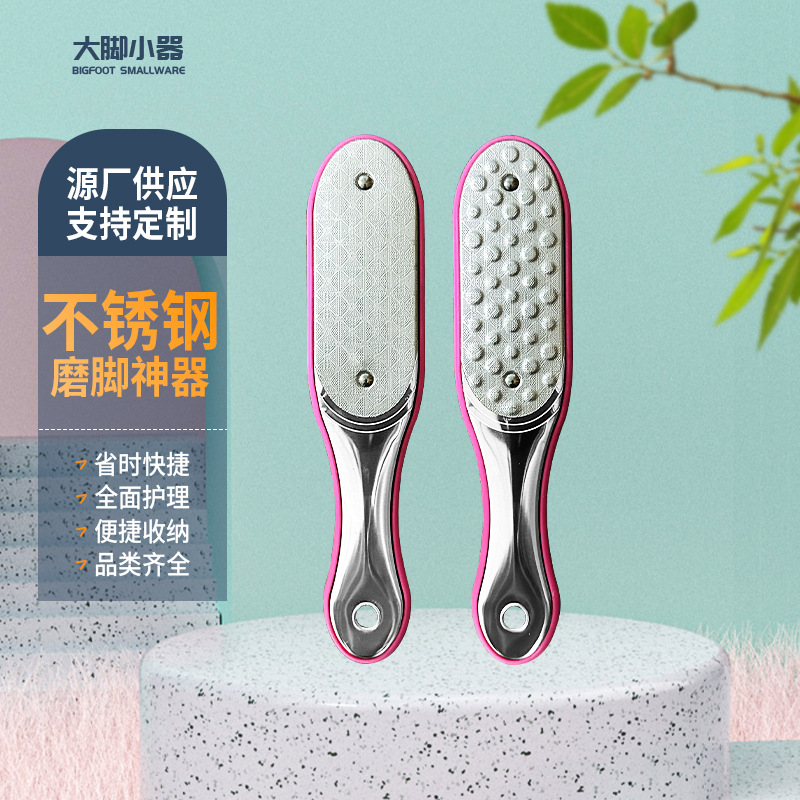 跨境不锈钢死皮锉双面脚板搓去死皮磨脚器去老茧搓脚板修脚工具