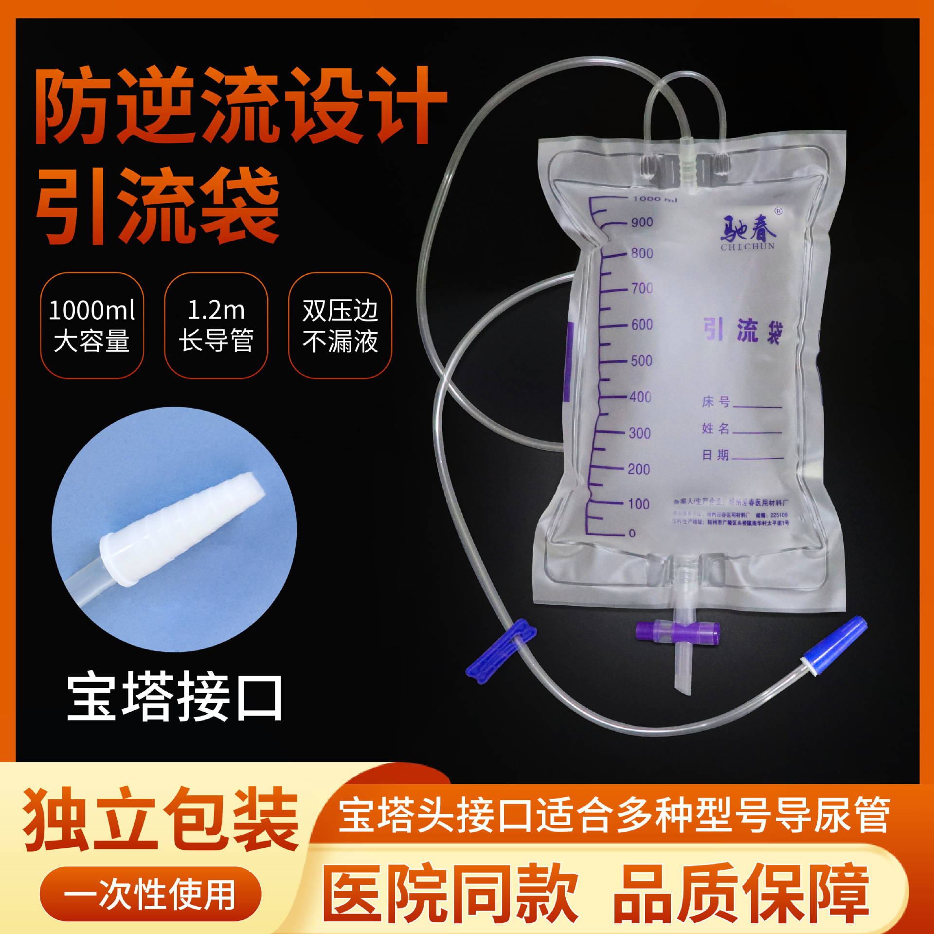 1000 ミリリットル大容量増粘ドレナージバッグ尿バッグ永遠の華冠使い捨て逆流防止ドレナージバッグ