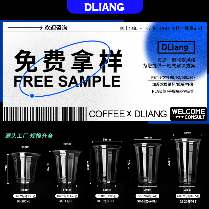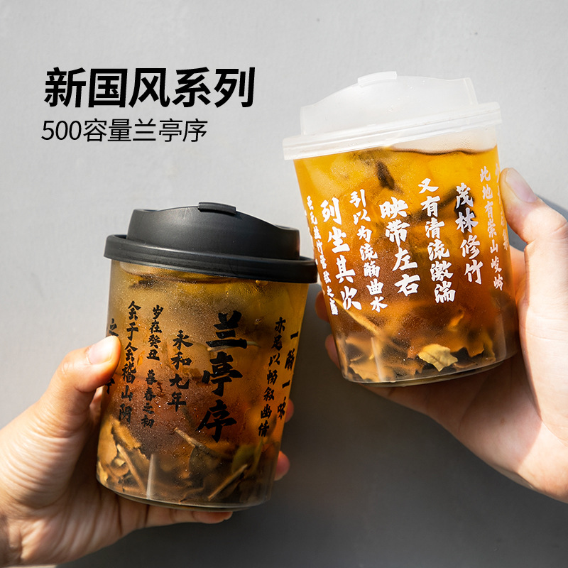 蘭亭序使い捨てカップ国風500ml透明ins冷たいカップ漏れ防止包装果物茶ロゴ印刷