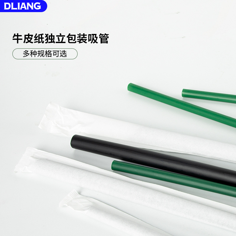 クラフト紙独立包装厚い透明ストローミルクティージュース黒ストロー延長使い捨て