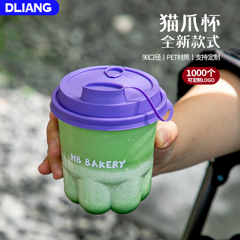 インス使い捨てコーヒーカバー付き猫の爪透明ペットプラスチックコールドドリンクカップミルクティーアメリカントイテイパッケージセット