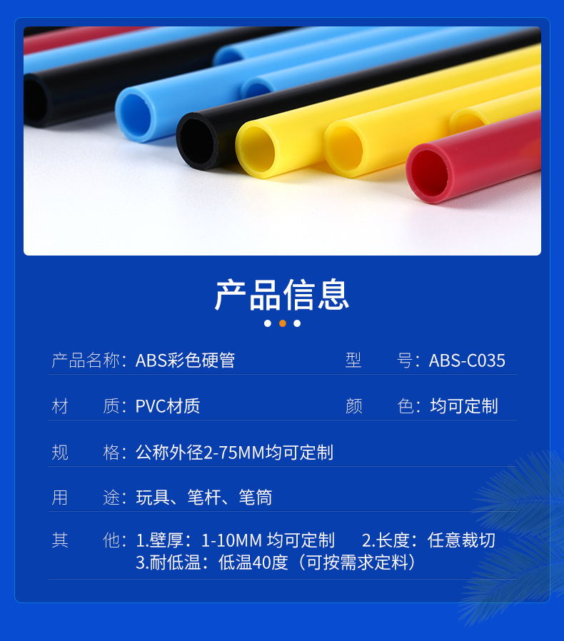 ABS樹脂製硬質パイプメーカーは、ランプ用の地面挿入アクセサリー、カラフルなプラスチックチューブ、おもちゃの猫じゃらし棒、丸パイプを供給しています。