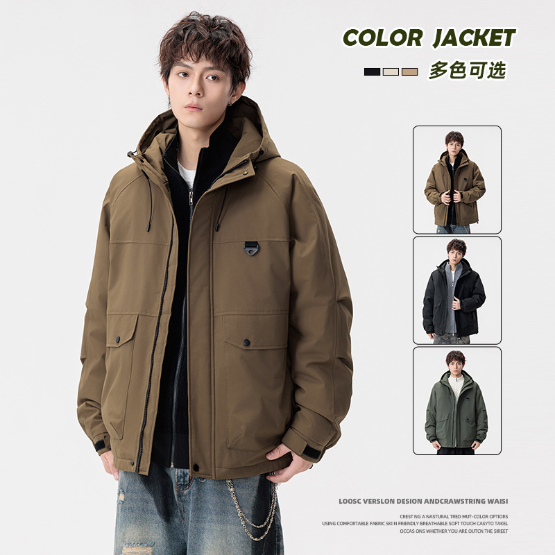 S5 117aの大きいサイズの男性服は秋の新型の帽子付きコートで通勤しています。