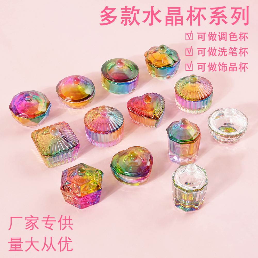 新しいシリーズの極光のまぶしい水晶の杯のネイルアートは蓋のガラスの調節可能な色のペンを持って色の杯のカラーの水晶の杯をめっきします。