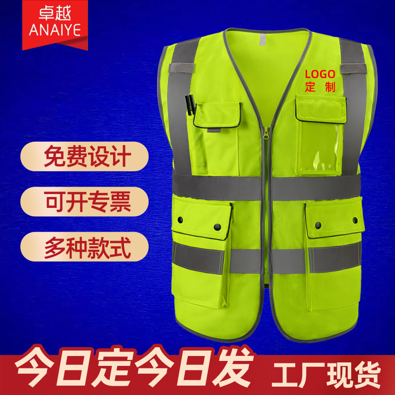 建築工事反射ベスト馬挟み高速交通路政反射馬甲安全多ポケット反射服卸売り