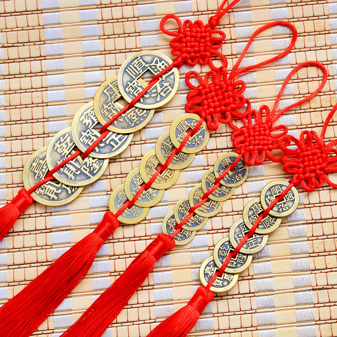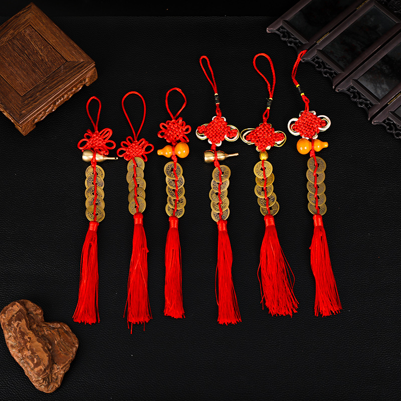尺寸:中国结为5号线编织,小铜钱直径为2.4cm,流苏长12cm,具体尺寸可以咨询客服