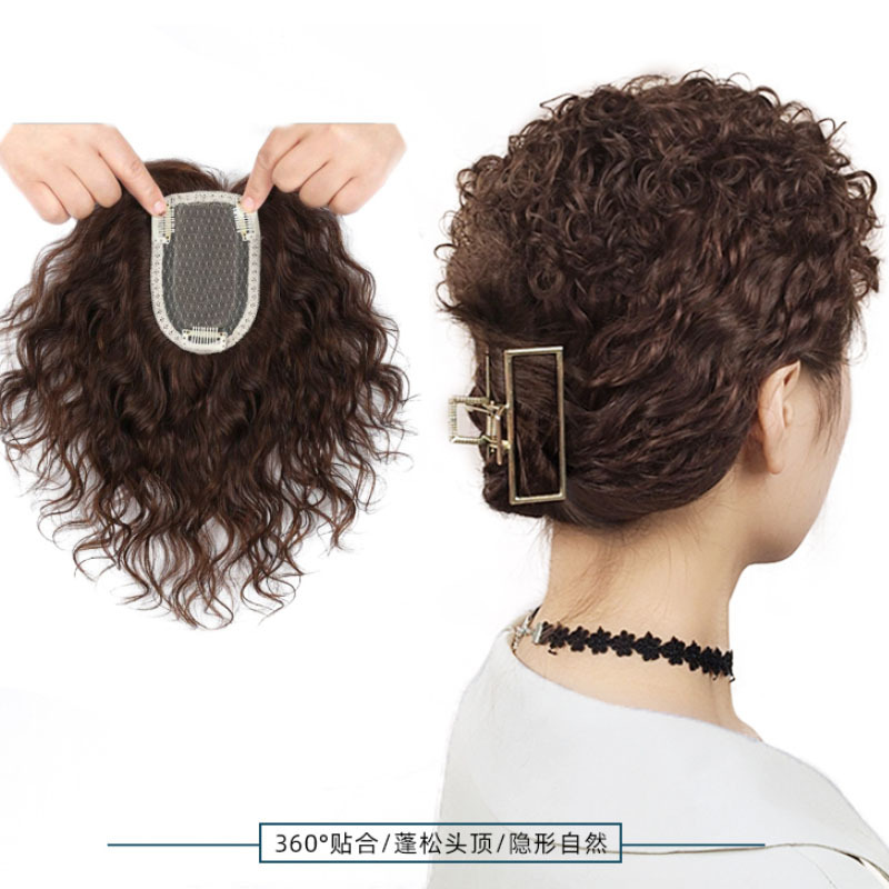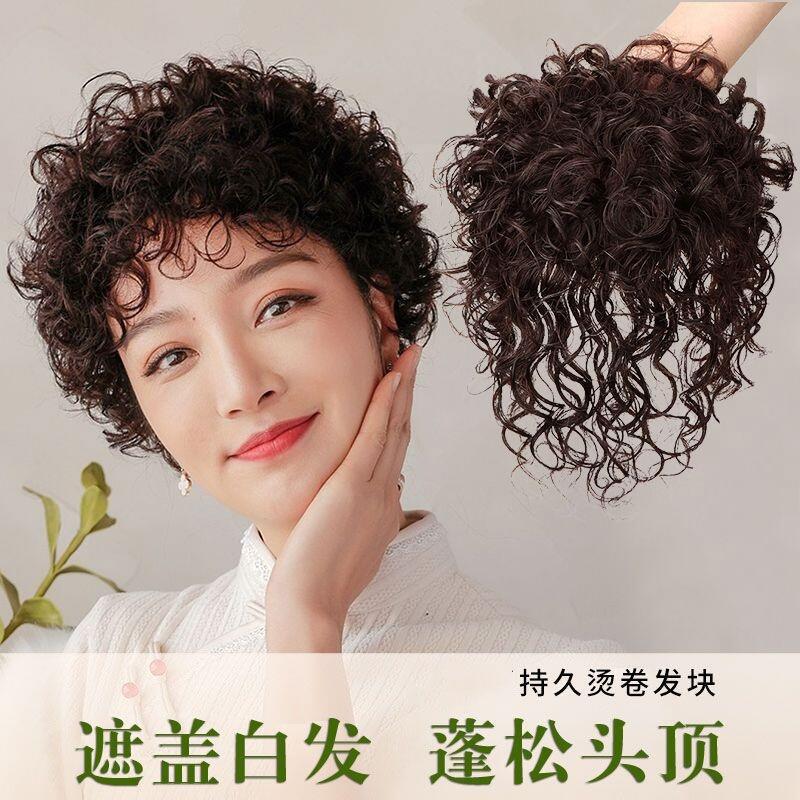 假发女头顶补发块仿真发短卷发无痕遮白发蓬松玉米须羊毛卷假发贴