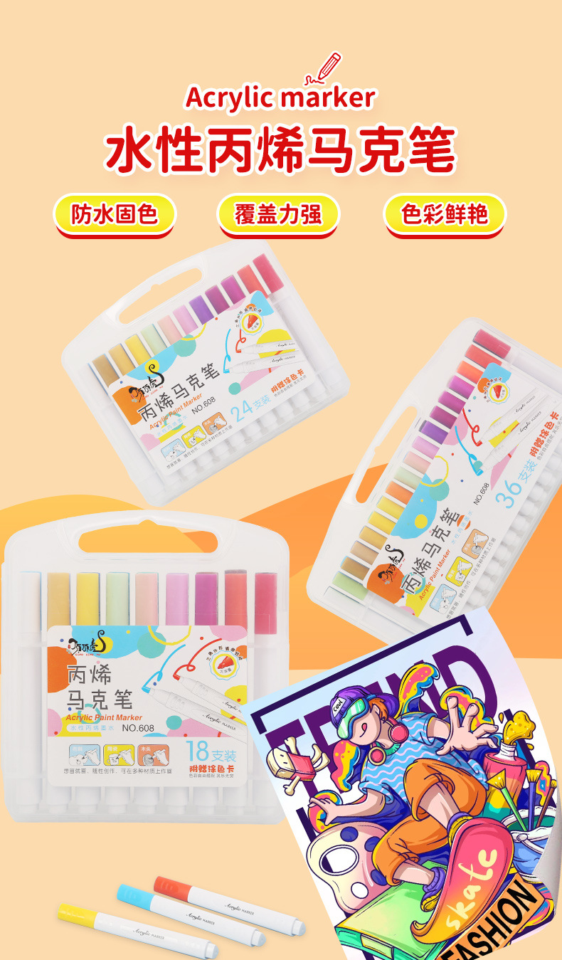 アクリルマークペン児童開学シーズン美術専用水彩ペン防水手描きdiy畳色アクリルペン