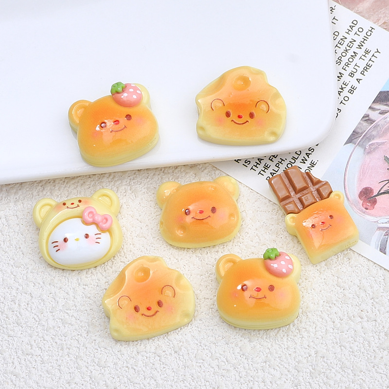樹脂部品クリームゴム漫画diy洞靴ボタンアクセサリー装飾ヘアピンバターベアチーズ食遊び