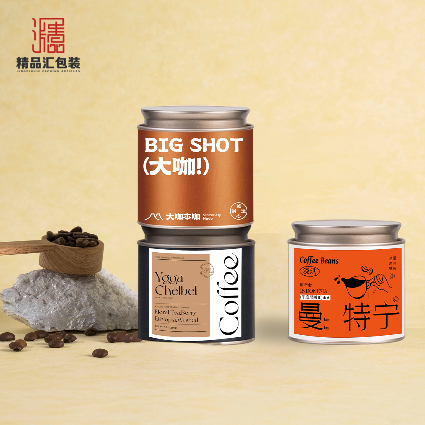 咖啡罐咖啡豆包装罐不干胶贴纸便捷咖啡粉密封罐标签纸咖啡小标