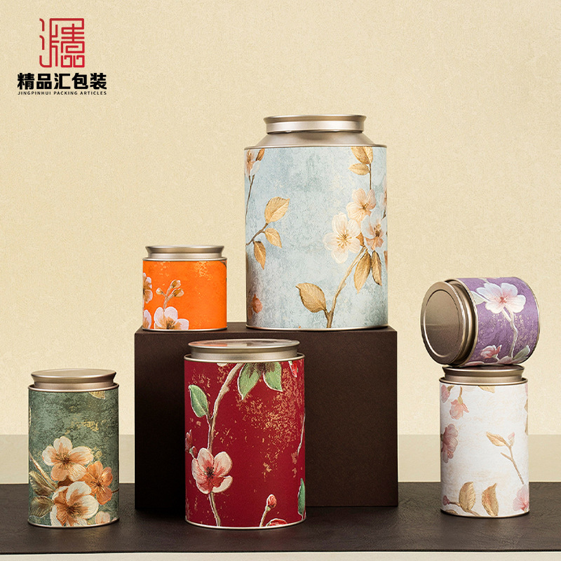茶葉密封缶半斤入通用茶葉缶円形紙缶赤緑茶プーアル散茶茶葉包装