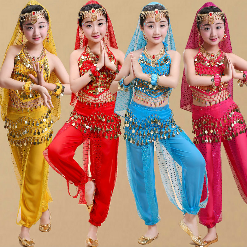 子供ダンス服インドダンス公演服民族新疆舞子供ベリーダンスハイライトズボン練習ショーセット