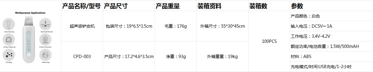 超声波铲皮仪美容仪铲皮机去黑头脸部毛孔清洁仪铲皮机跨境工厂