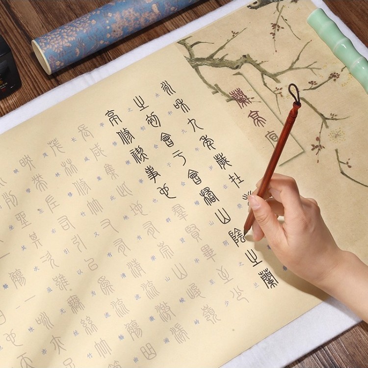 曹全碑の所有者の本千字文の全編の古風の長い巻きの毛筆の宣紙は赤い手本を描きます。