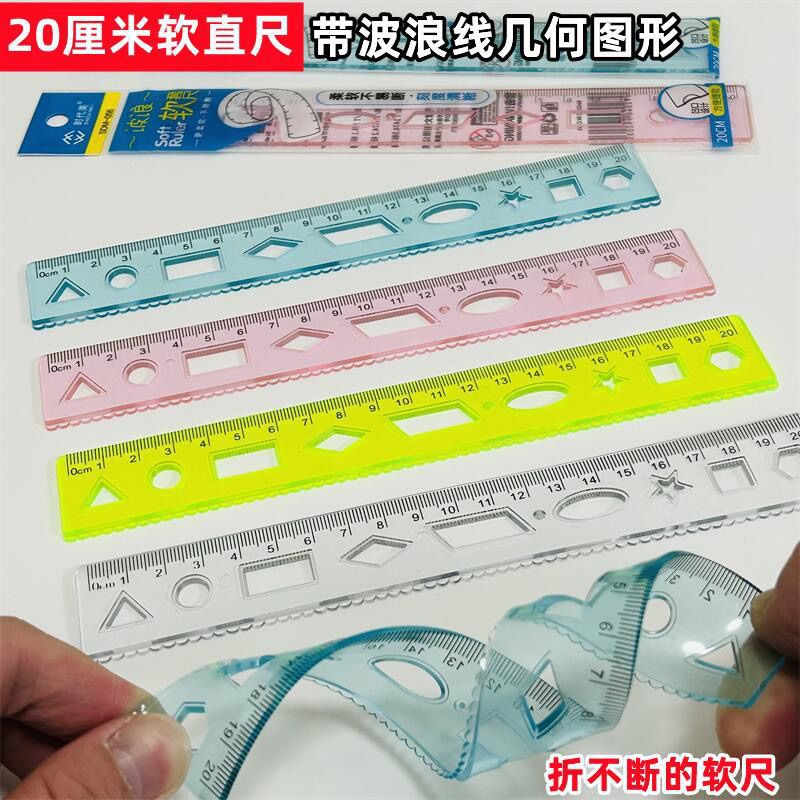 20cm软尺子可弯曲不易断直尺格尺波浪线小学生绘画多种几何图形尺