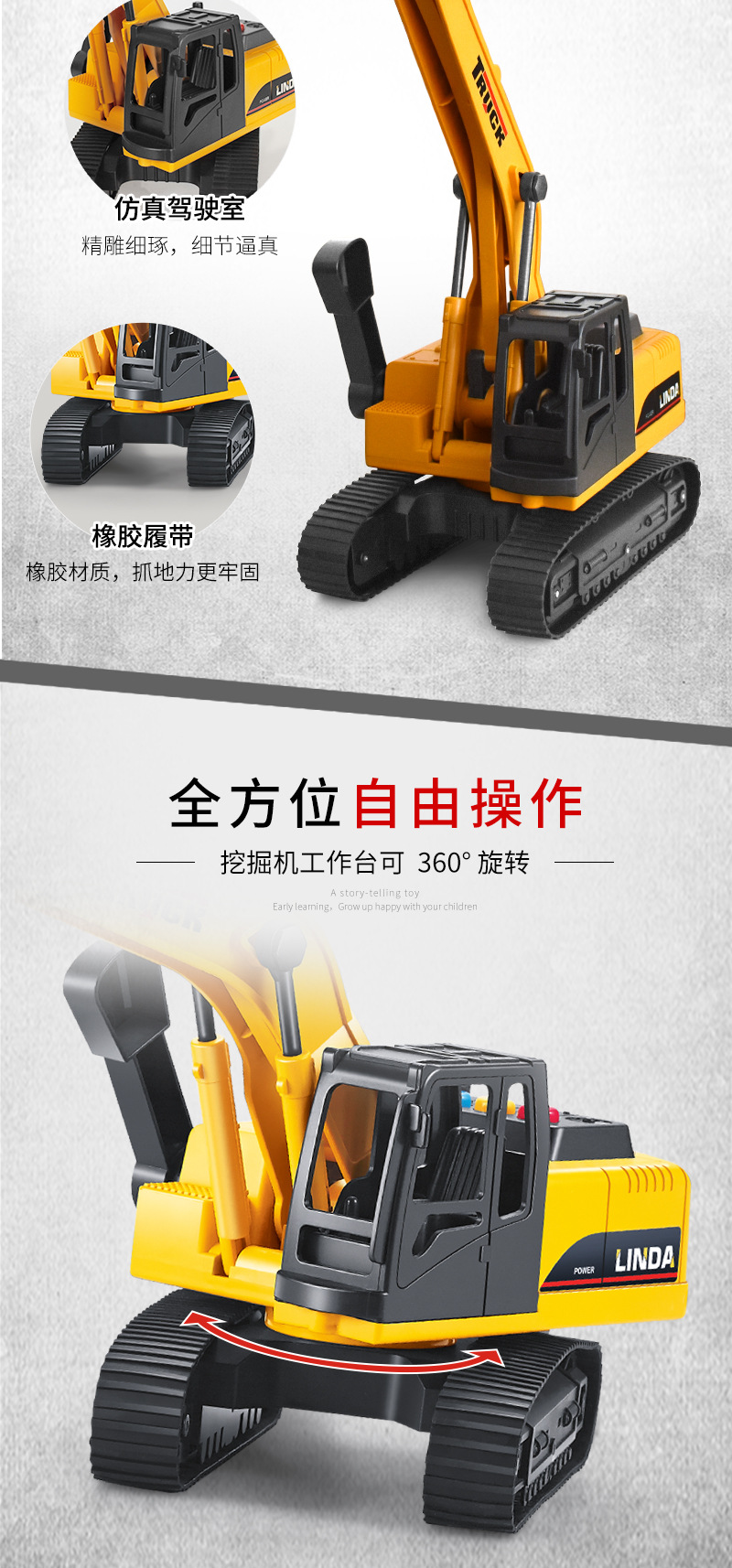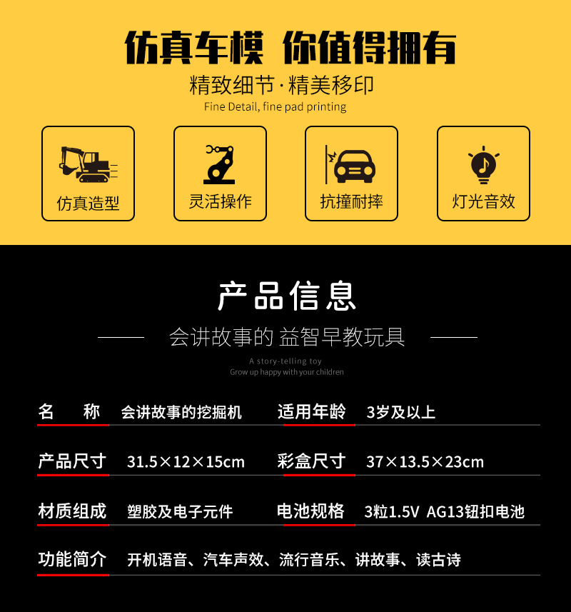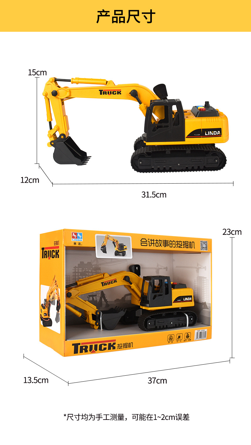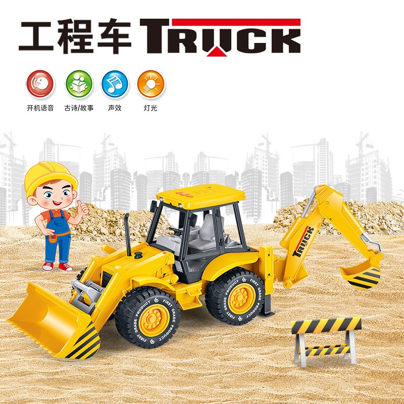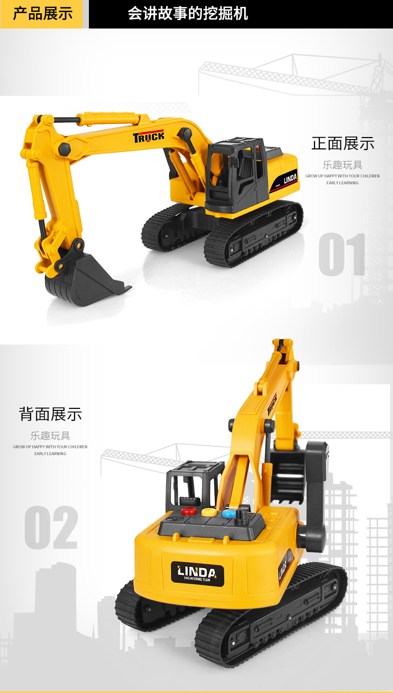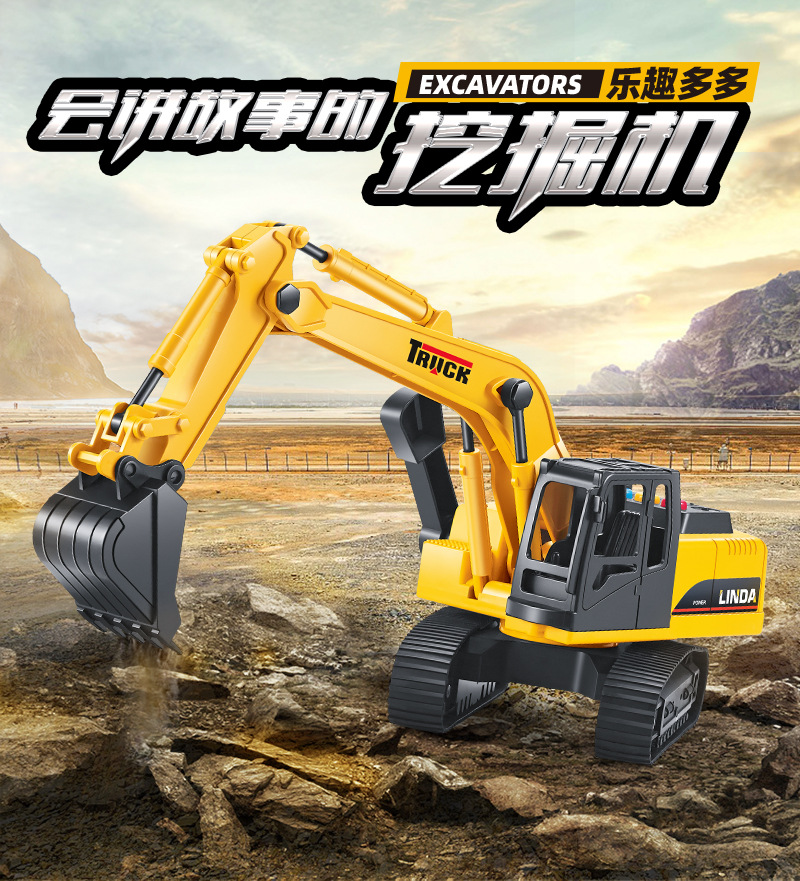子供向けの物語を語るおもちゃ、大型掘削機のおもちゃ、土掘り機、工事車両、音楽付き、赤ちゃんの知育玩具