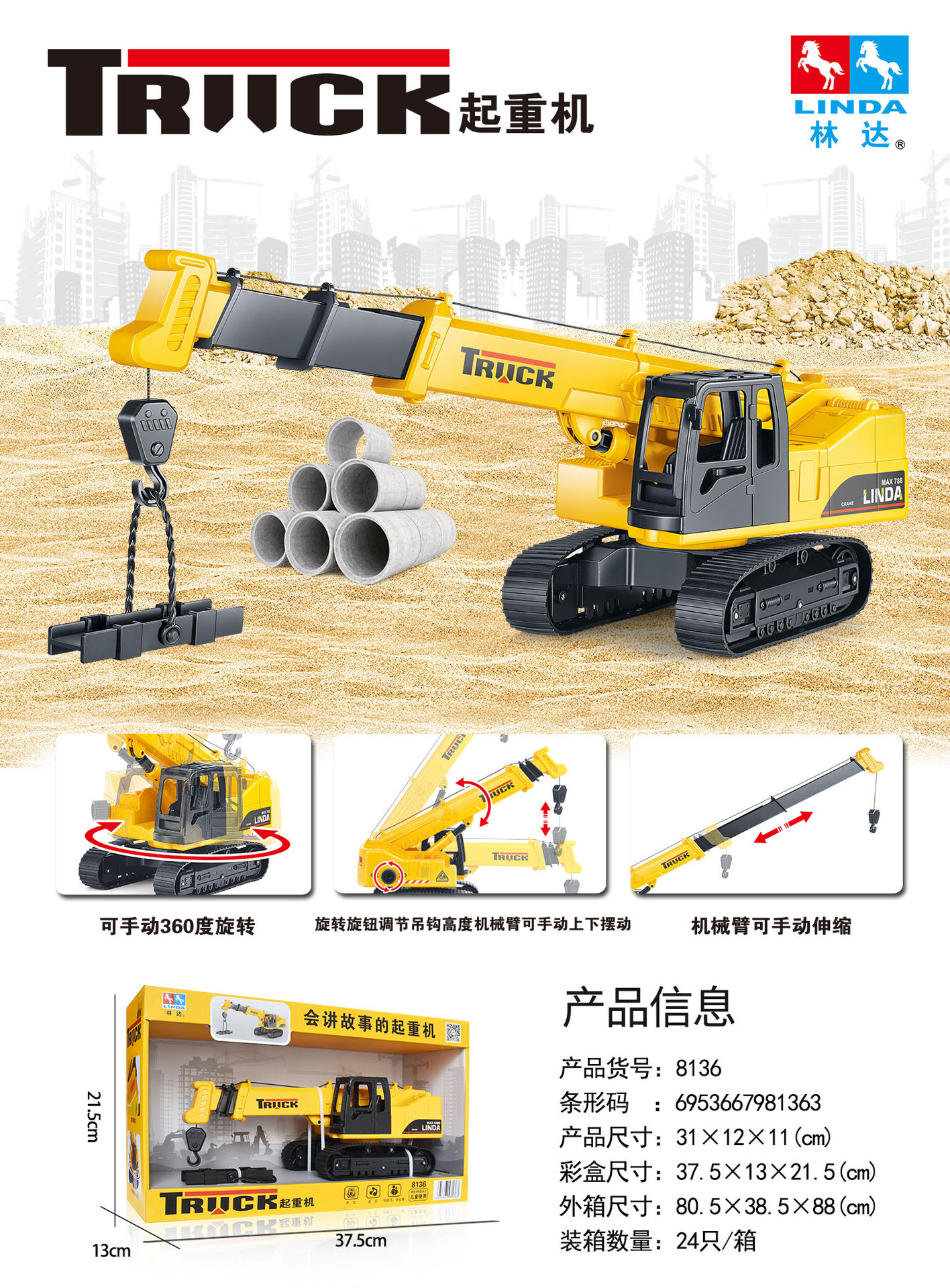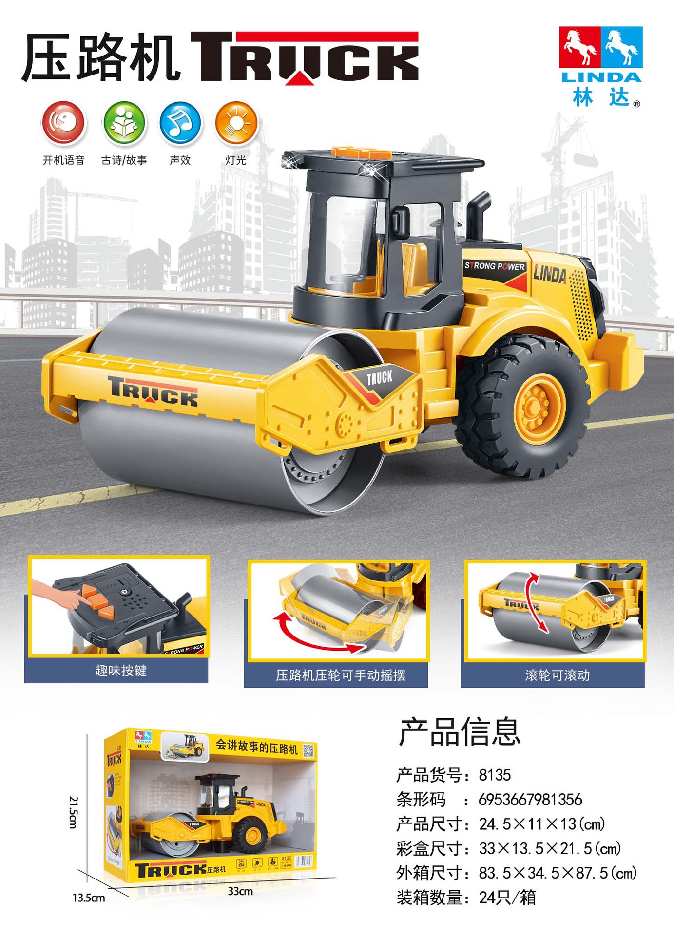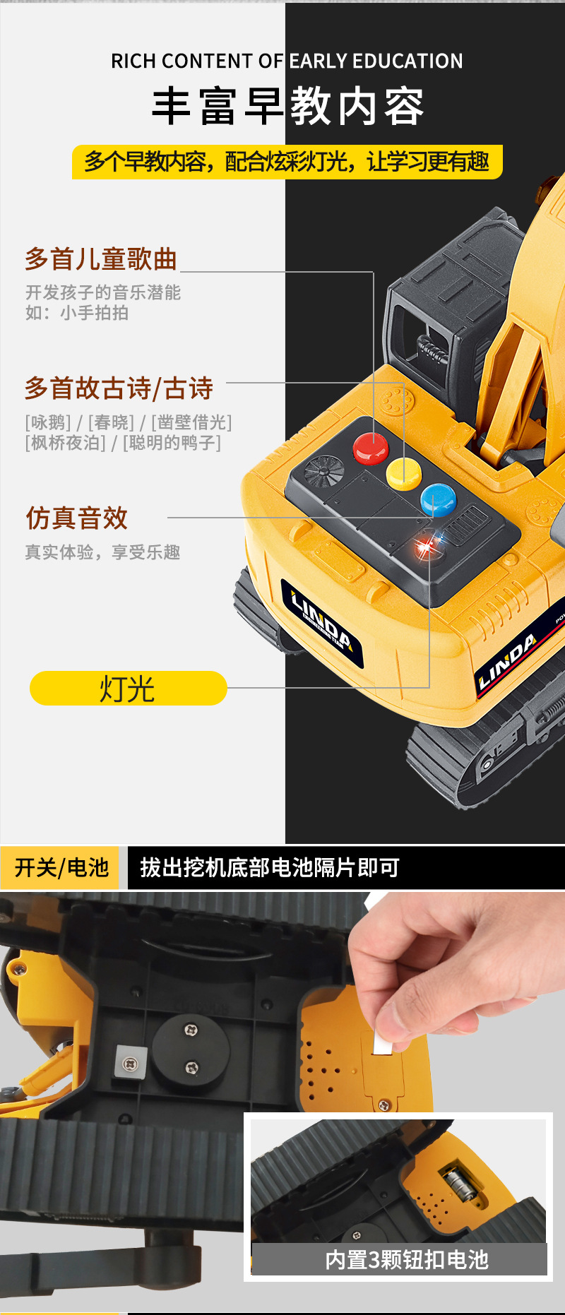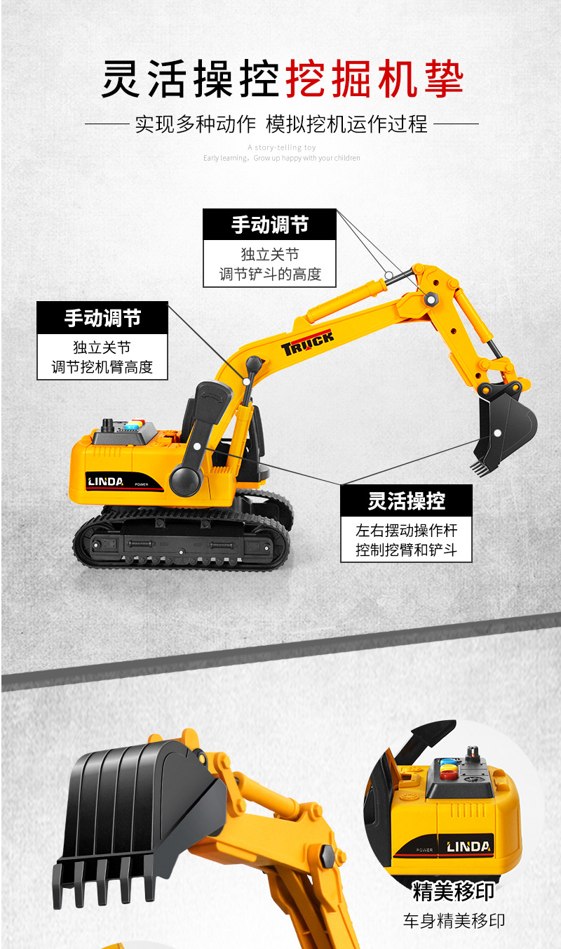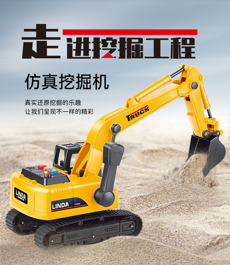 リンダ大型子供用おもちゃ車、音楽と光付き慣性掘削機、ブルドーザー、建設車両モデル、男の子向けおもちゃ