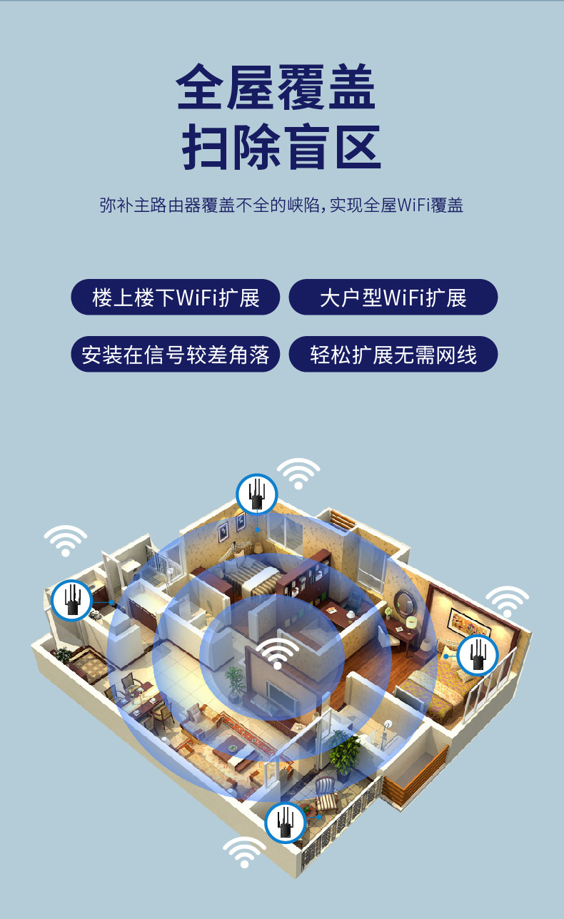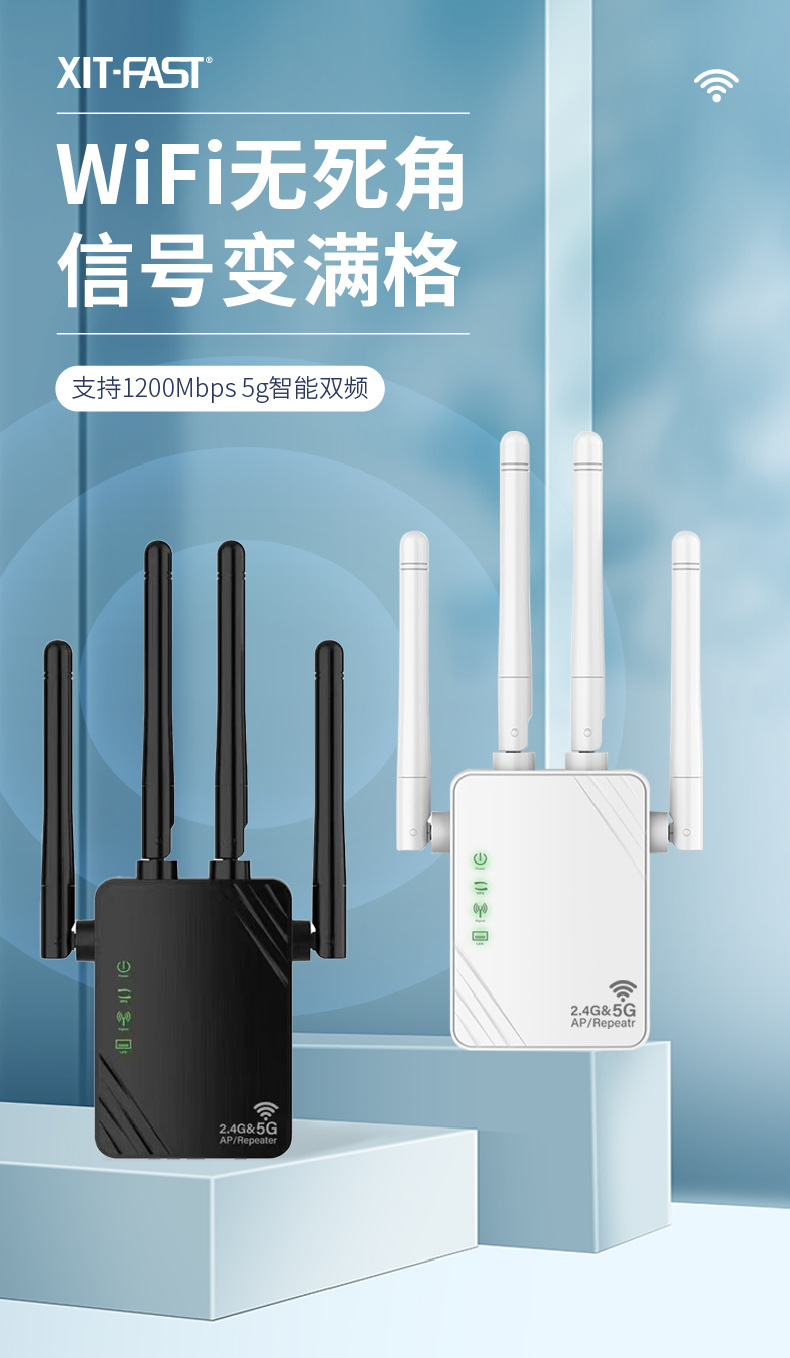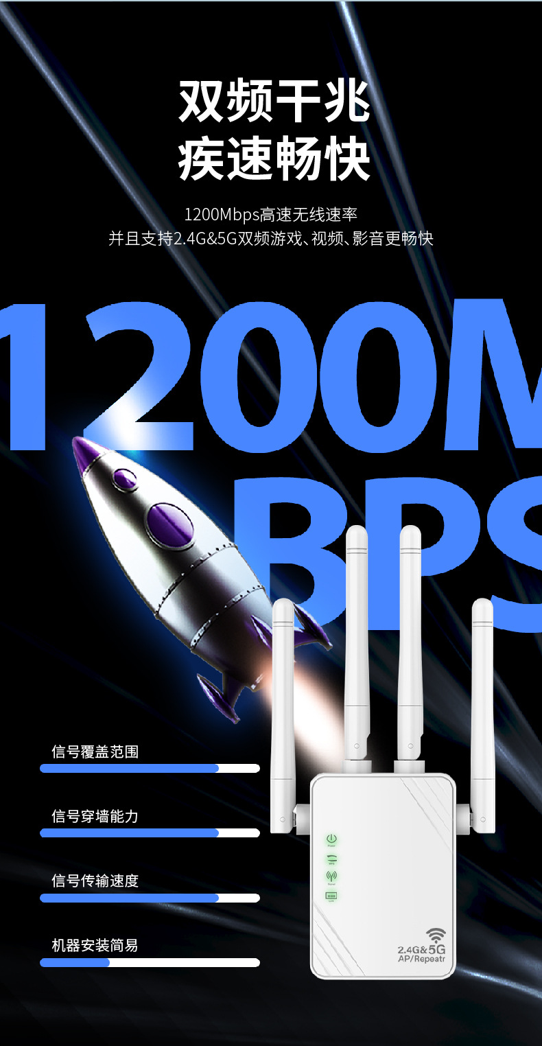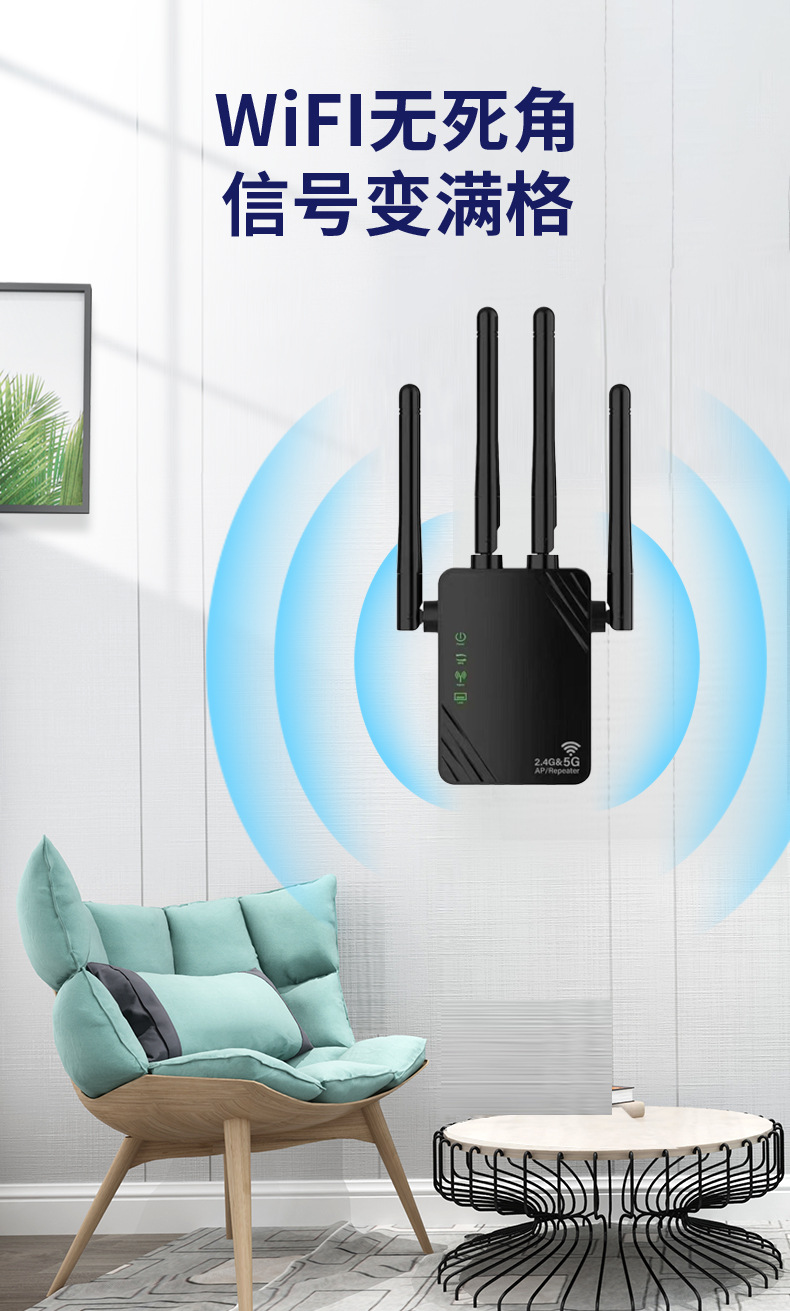 工場直販WiFi信号増幅器リピーター1200Mデュアルバンド5G越境人気商品信号増強器