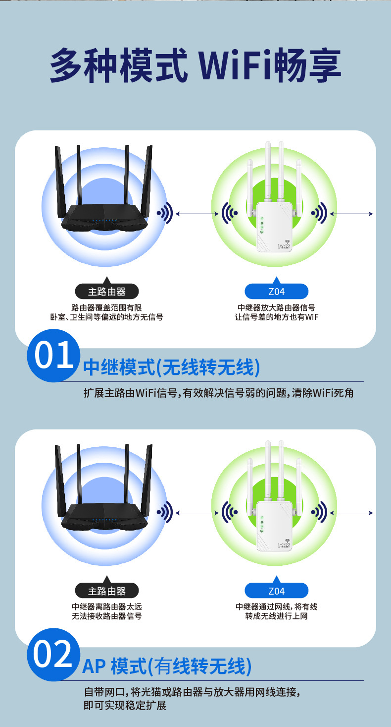 国外爆款1200M双频中继器 wifi信号放大器扩展器增强器无线中继器