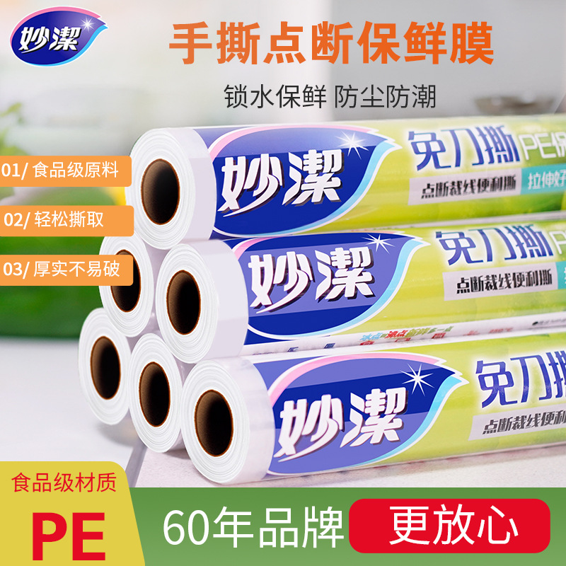 妙潔ラップフィルム食品級家庭用PE点断式使い捨て高温冷蔵庫冷蔵台所用品卸売り