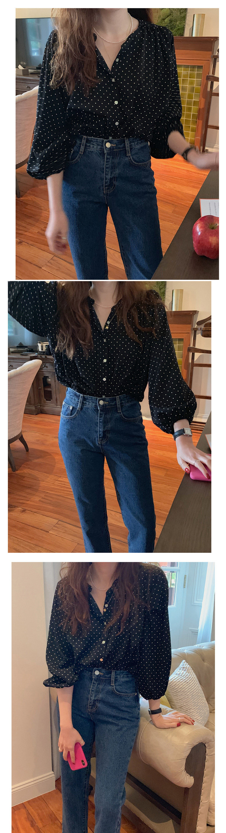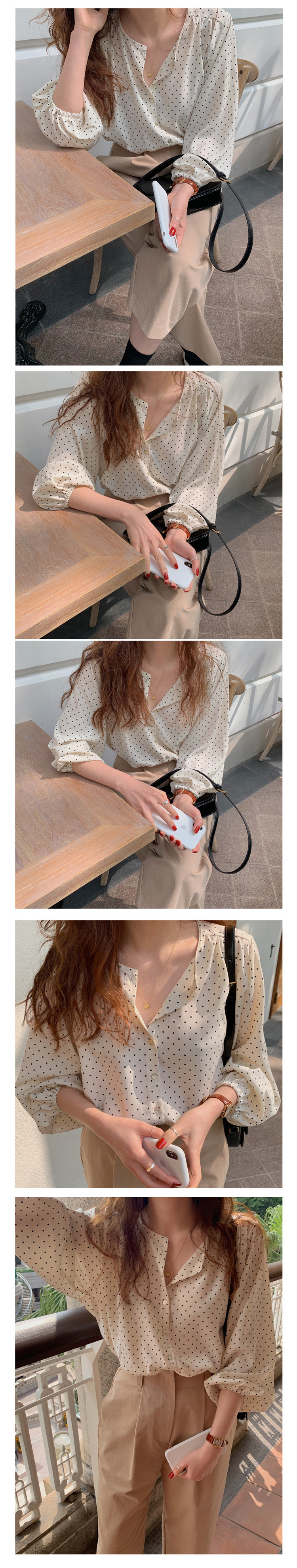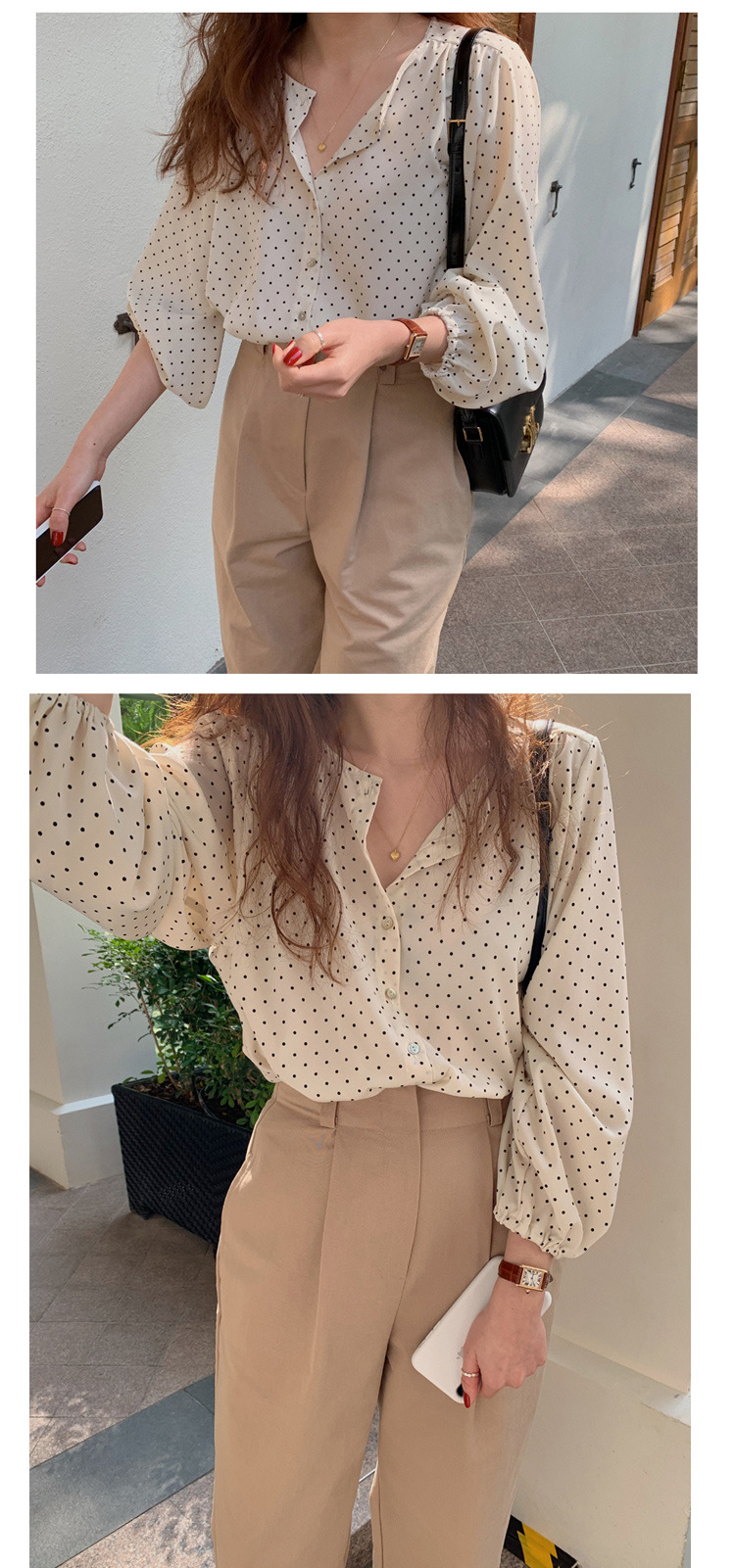 韓国chicデザイン感シャツ女性提灯長袖波点シャツゆるい上着シンプルで怠惰