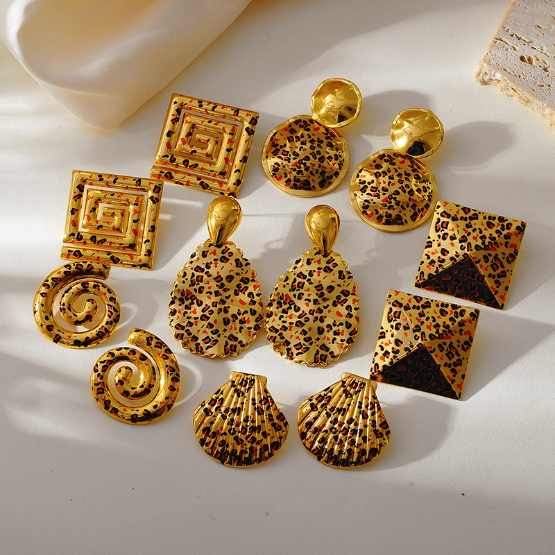 欧米のレトロなステンレスの保色のヒョウの紋様のピアスの女性の軽い豪華な大衆の18k金メッキの幾何学のイヤリングのイヤリングの卸売り