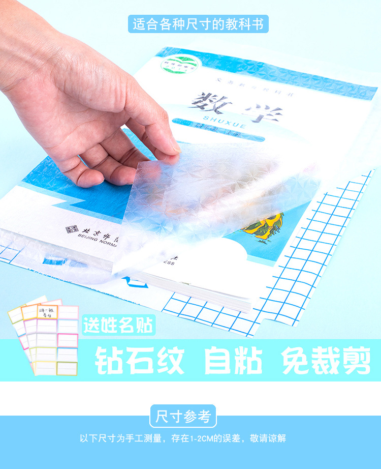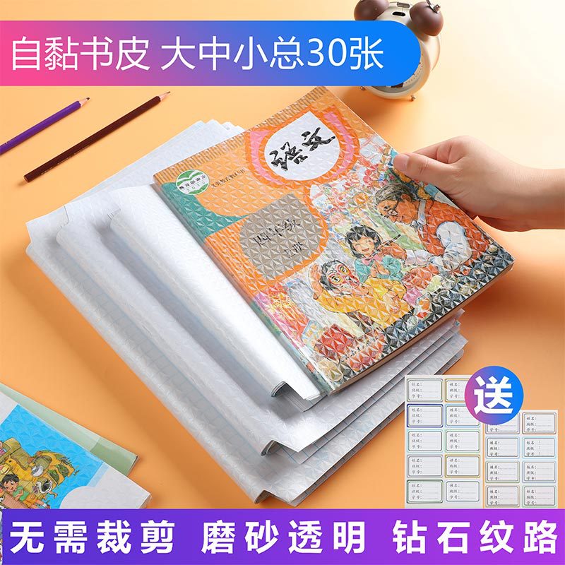 40张包邮书皮纸自粘透明磨砂包书皮小学生16k25kA4加厚全书套书皮