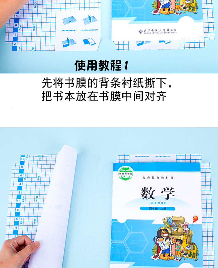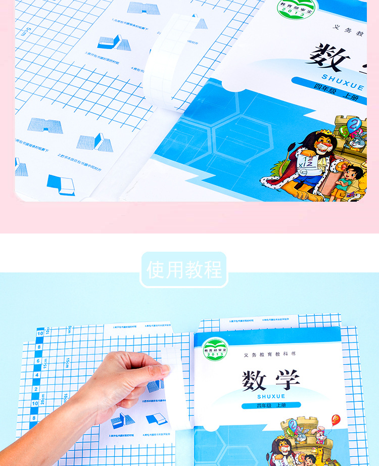 学生は厚手のカバーのカバーを使って、本のカバーの透明性を粘着します。