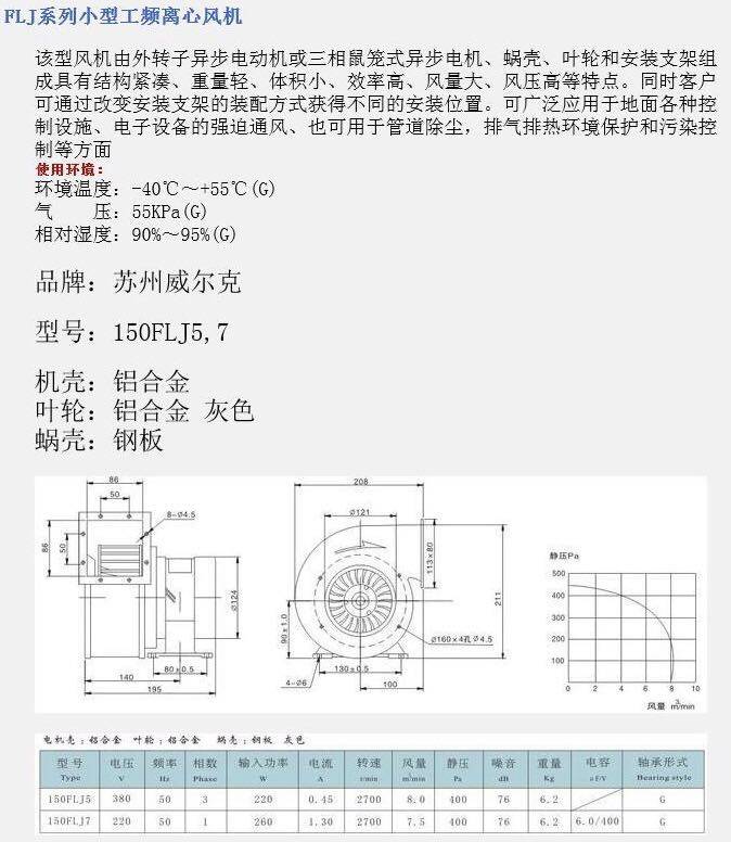 蘇州ウィック150FLJ5 150FLJ7小型周波数放熱遠心ファン220V380V