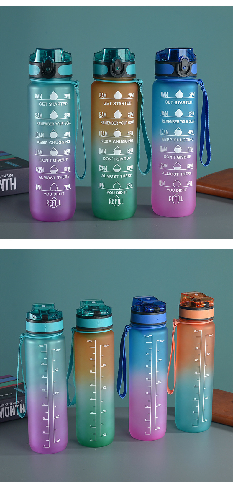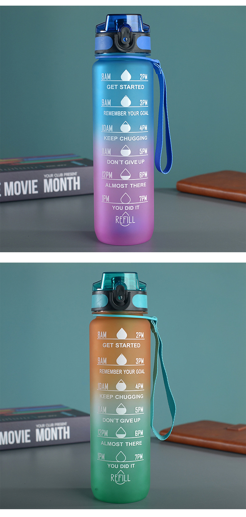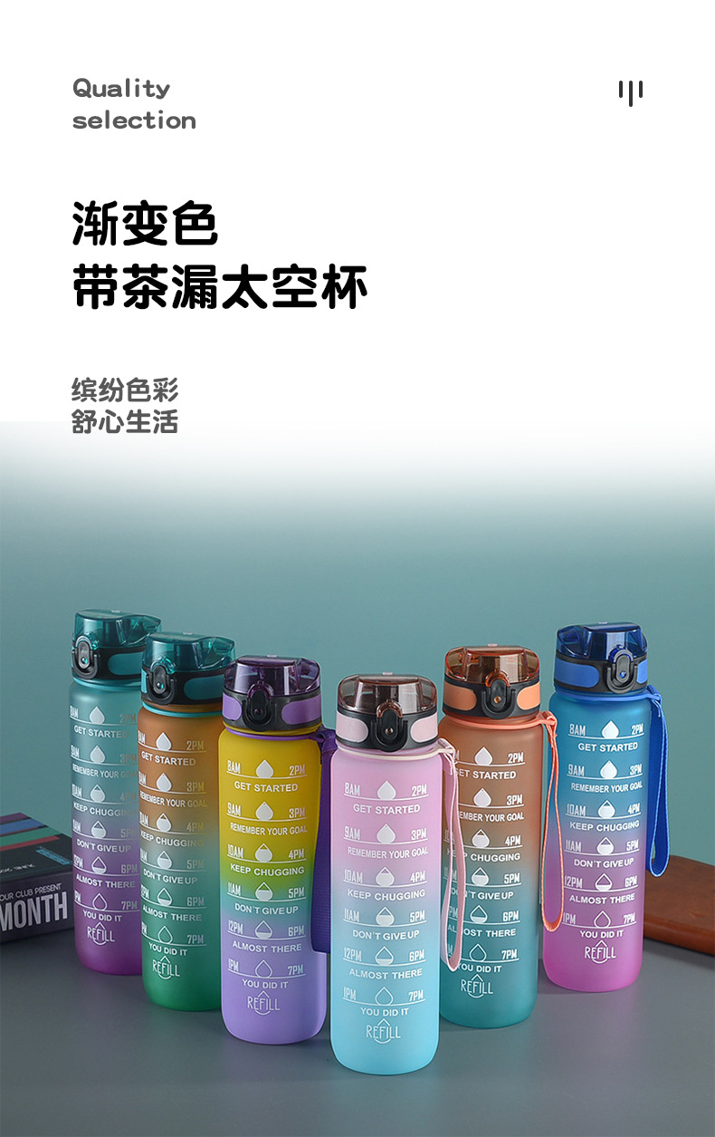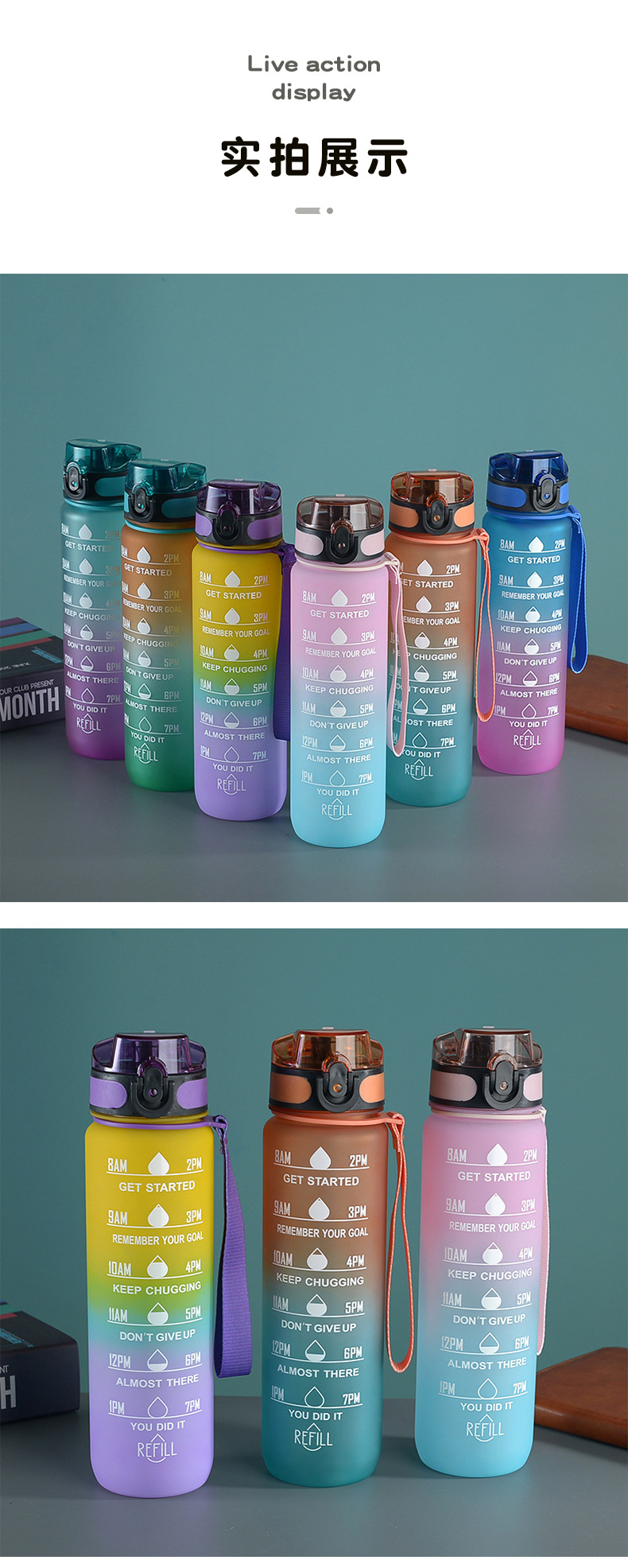 クロスボーダー1000mlグラデーション色吸口カッププラスチックカップスポーツカップpc材質フロスト携帯宇宙カップ卸売り
