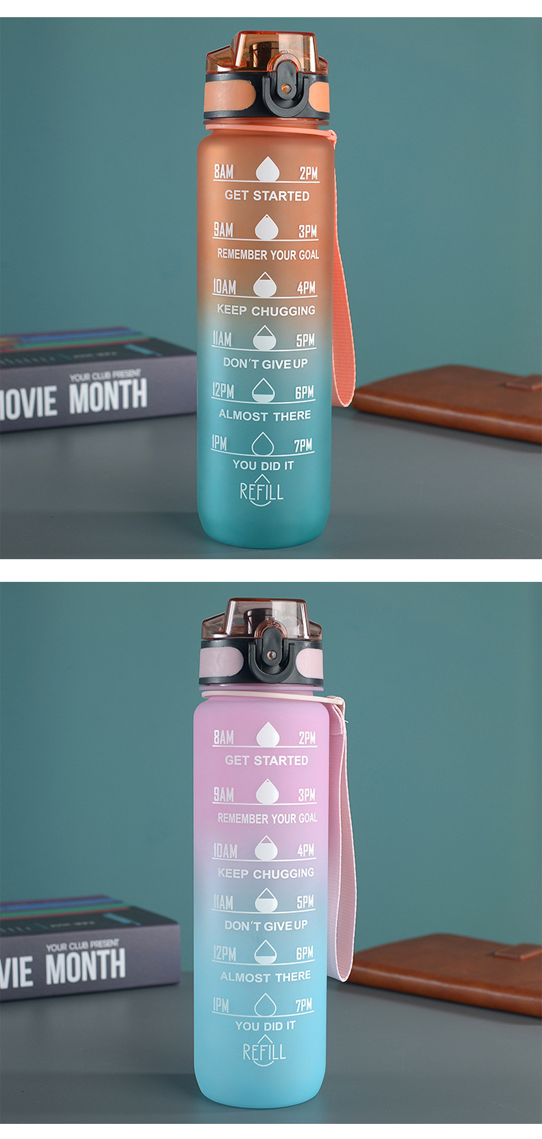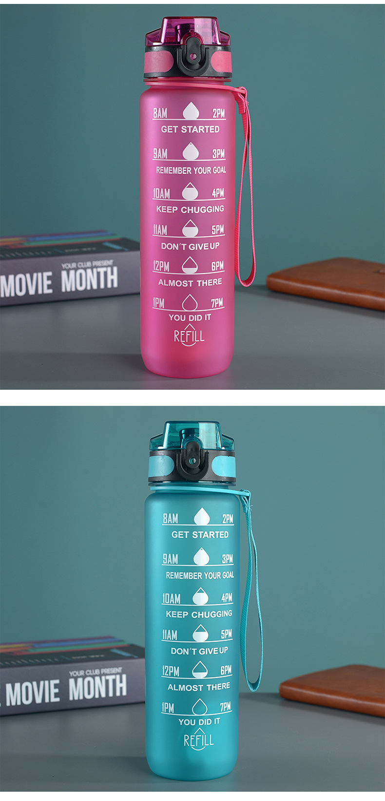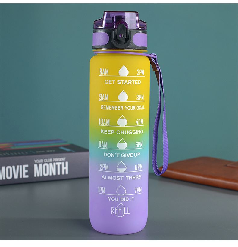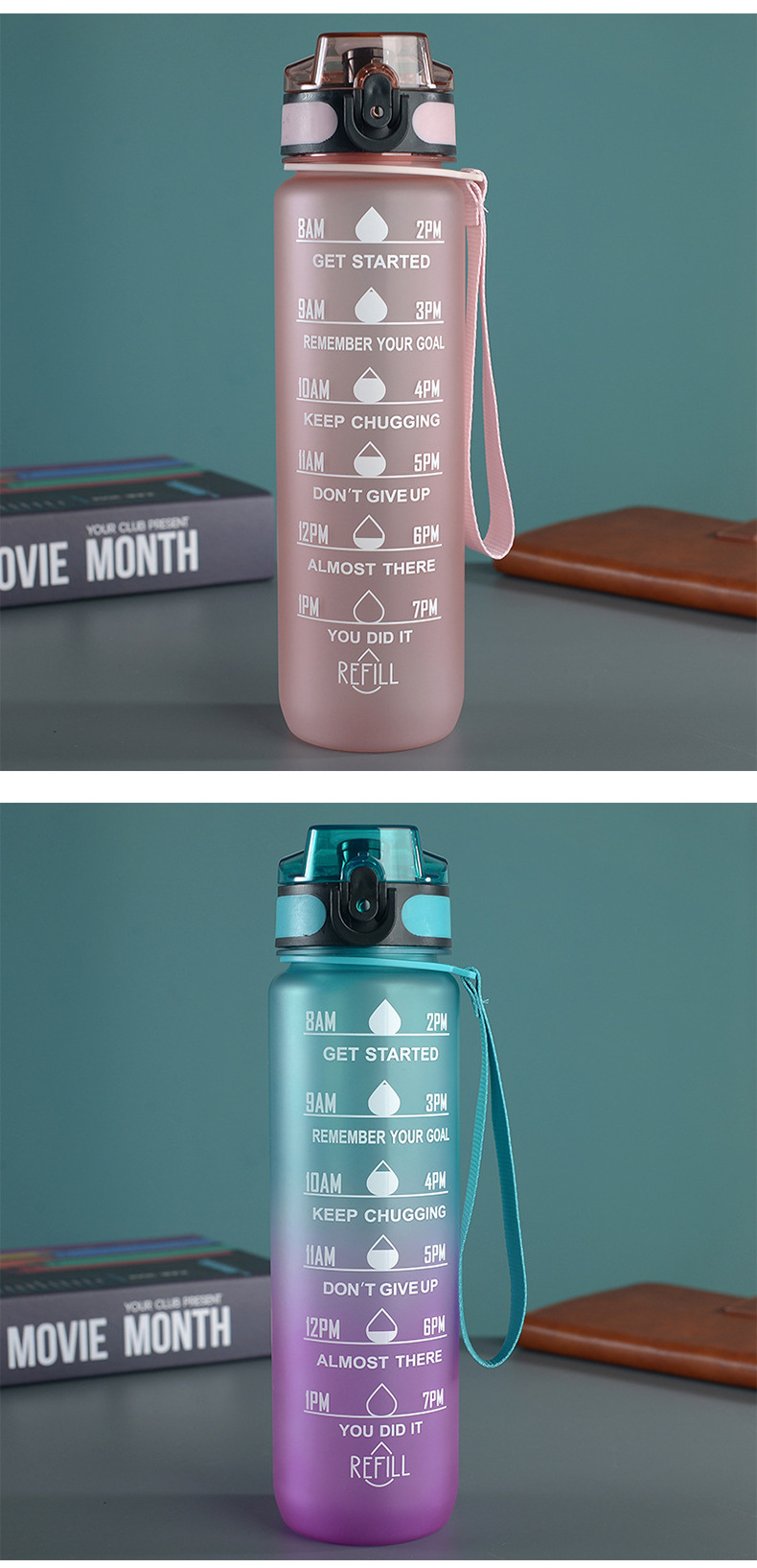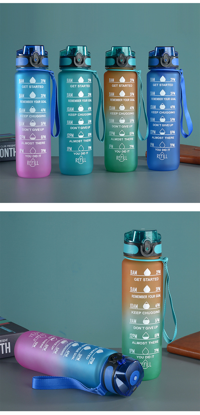 クロスボーダー1000mlグラデーション色吸口カッププラスチックカップスポーツカップpc材質フロスト携帯宇宙カップ卸売り