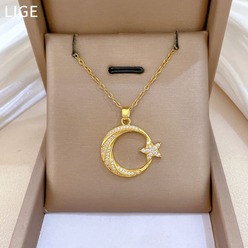 【钛钢】 月亮星星轻奢风气质华丽满钻项链女百搭锁骨链钛钢链