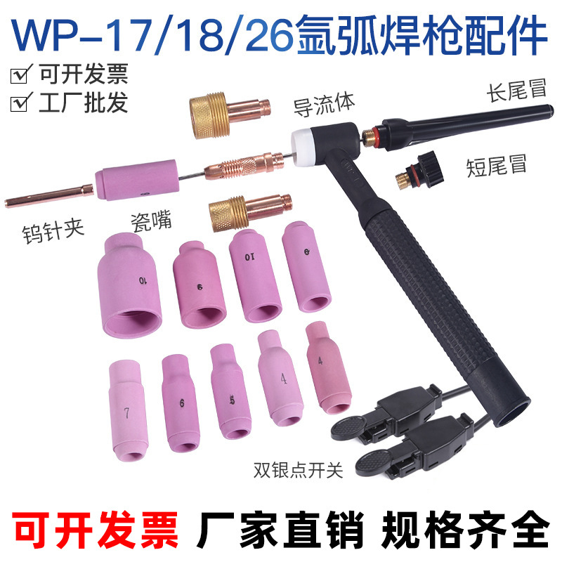 アルゴンアーク溶接ガンヘッドwp17/12水冷スクリーンガイド流体長さガンテール紫銅タングステン極クリップスイッチ磁器口