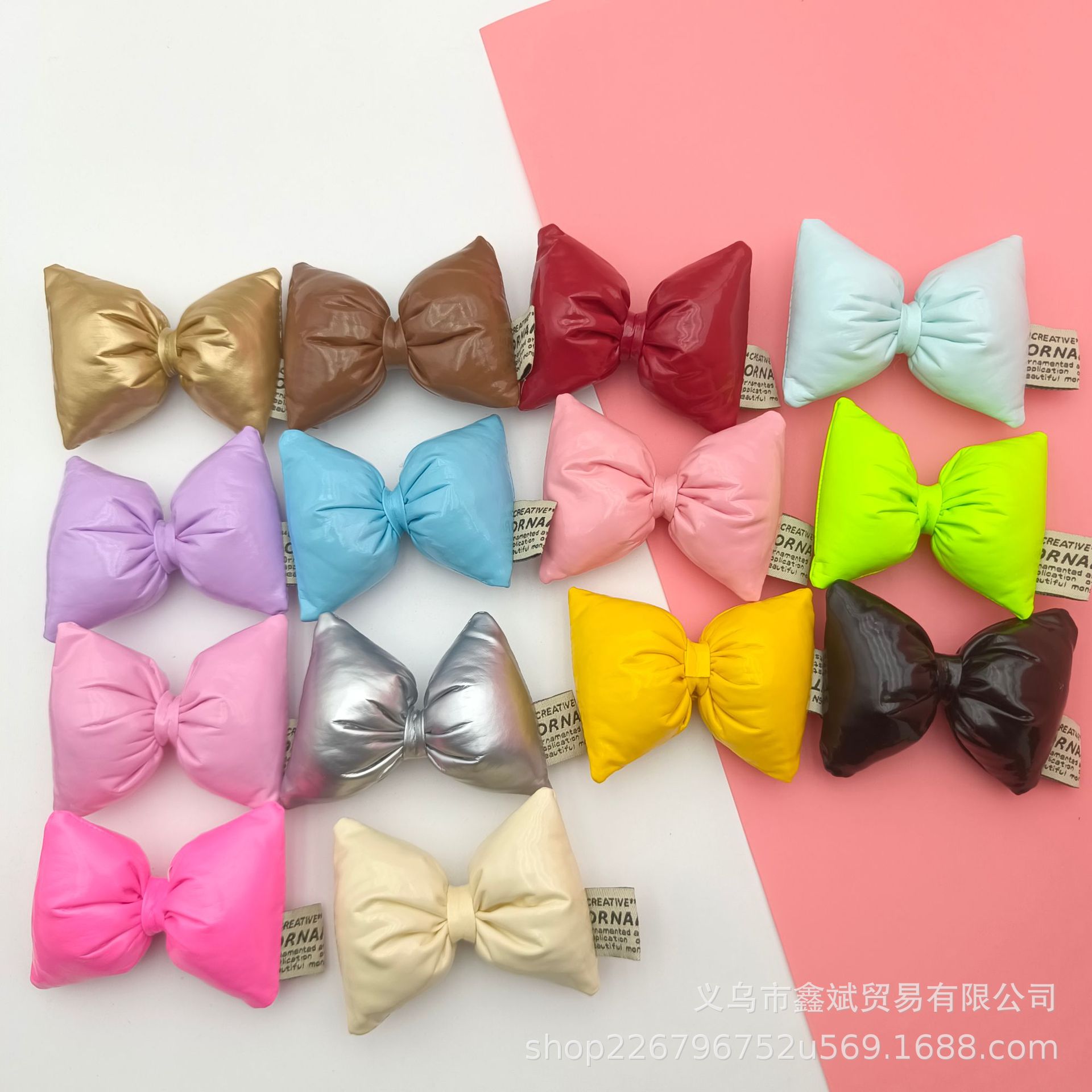 多巴胺色皮革充棉蝴蝶结配饰儿童凉鞋帽子少女DIY包包手机壳配件
