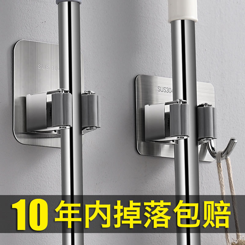 ステンレスモップフックほうきクリップ穴なしトイレ壁掛け固定クリップ収納神器ほうきハンガー