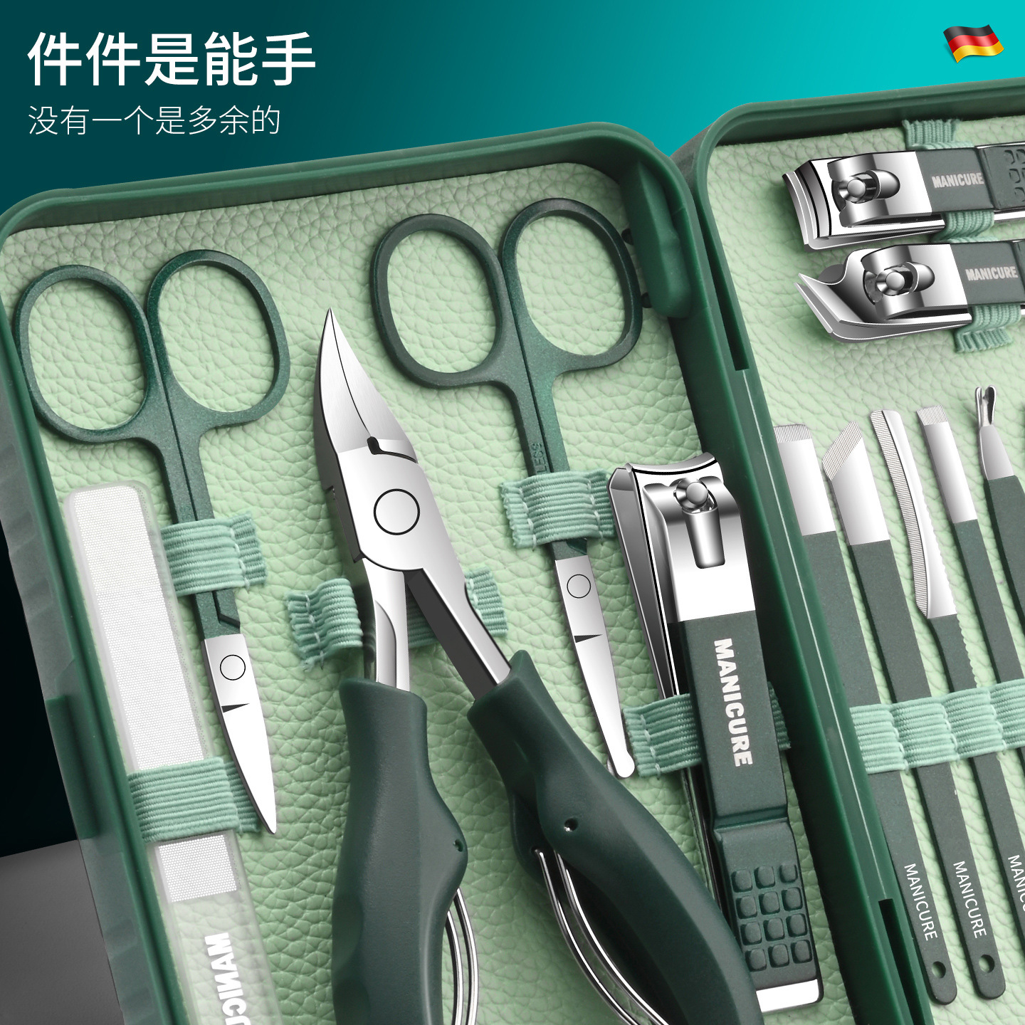 德系指甲刀12套装全套盒单个防飞溅指甲钳修脚神器斜口指甲剪刀国