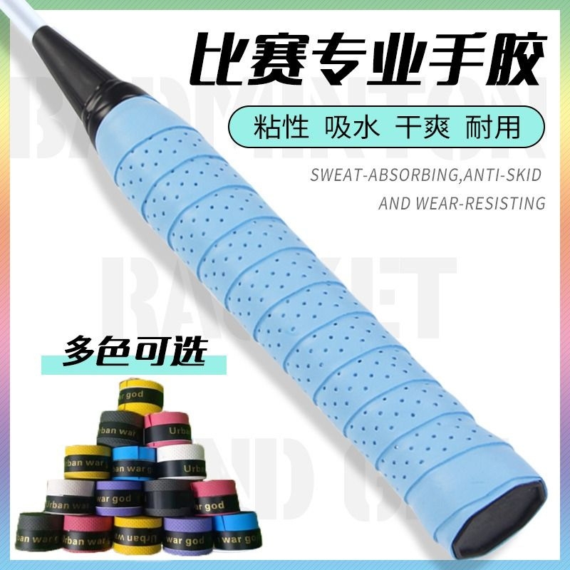 バドミントンのラケットの手のゴムは汗を吸い取ります。滑り止めの粘りがあります。