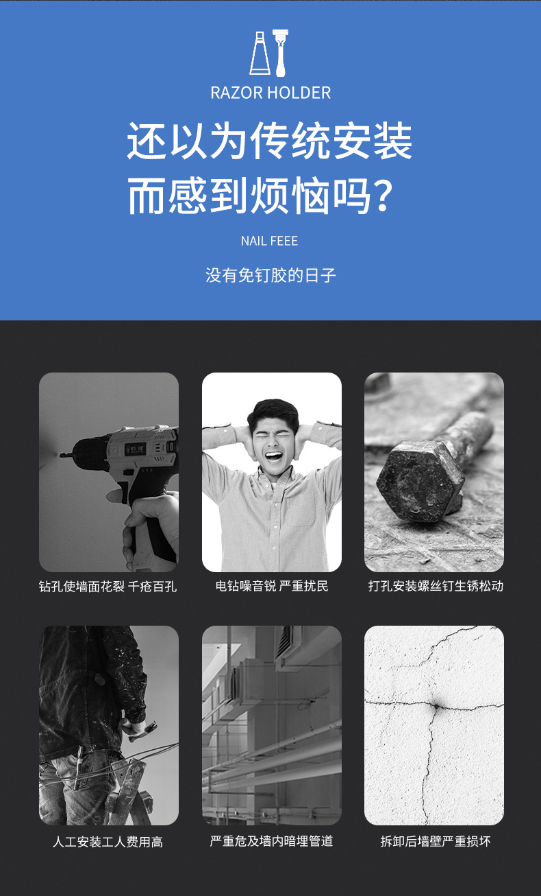 クロスボーダー多機能電源プラグフック穴なし手動シェーバーフックシェーバー収納ブラケット