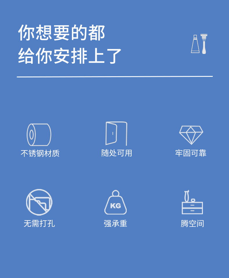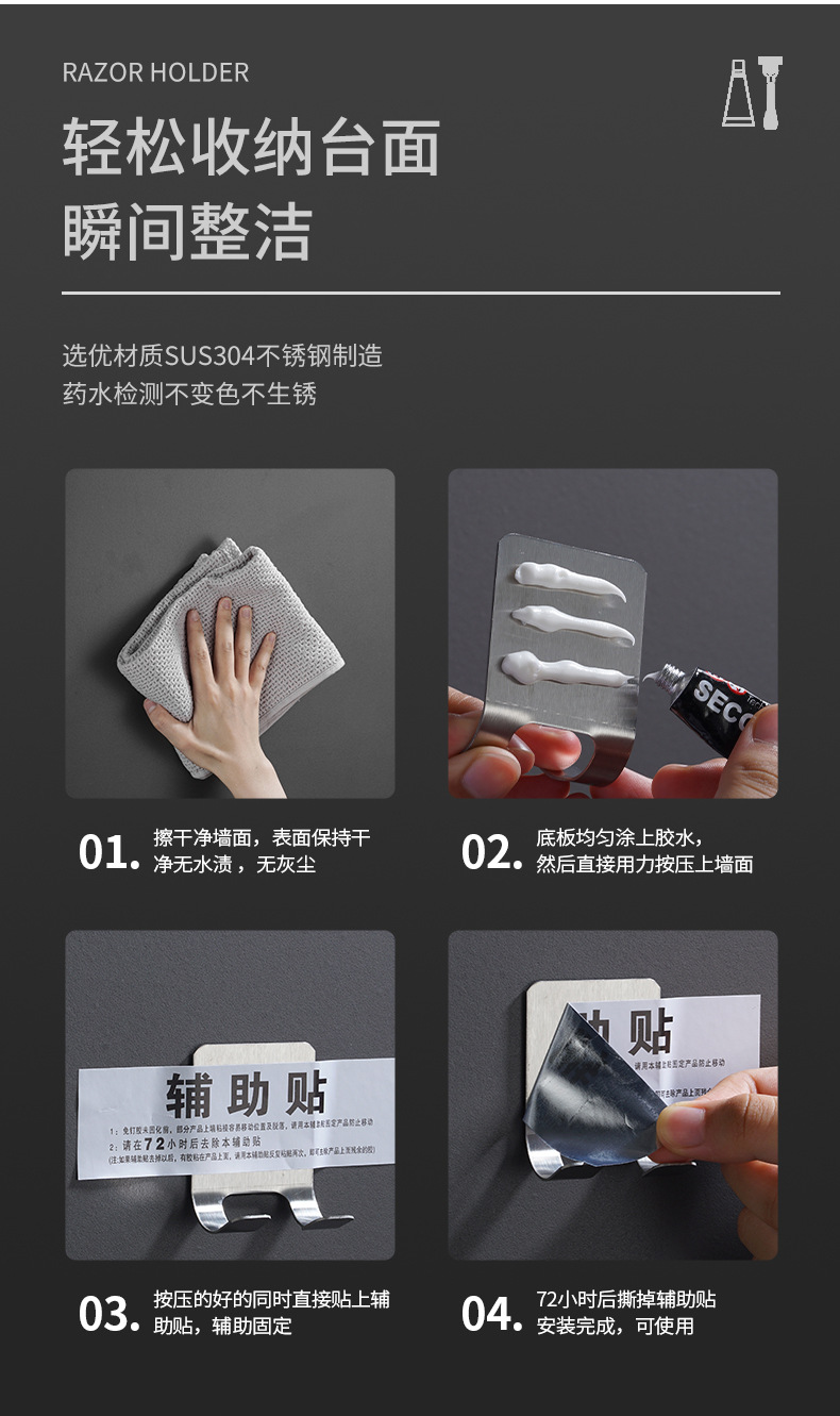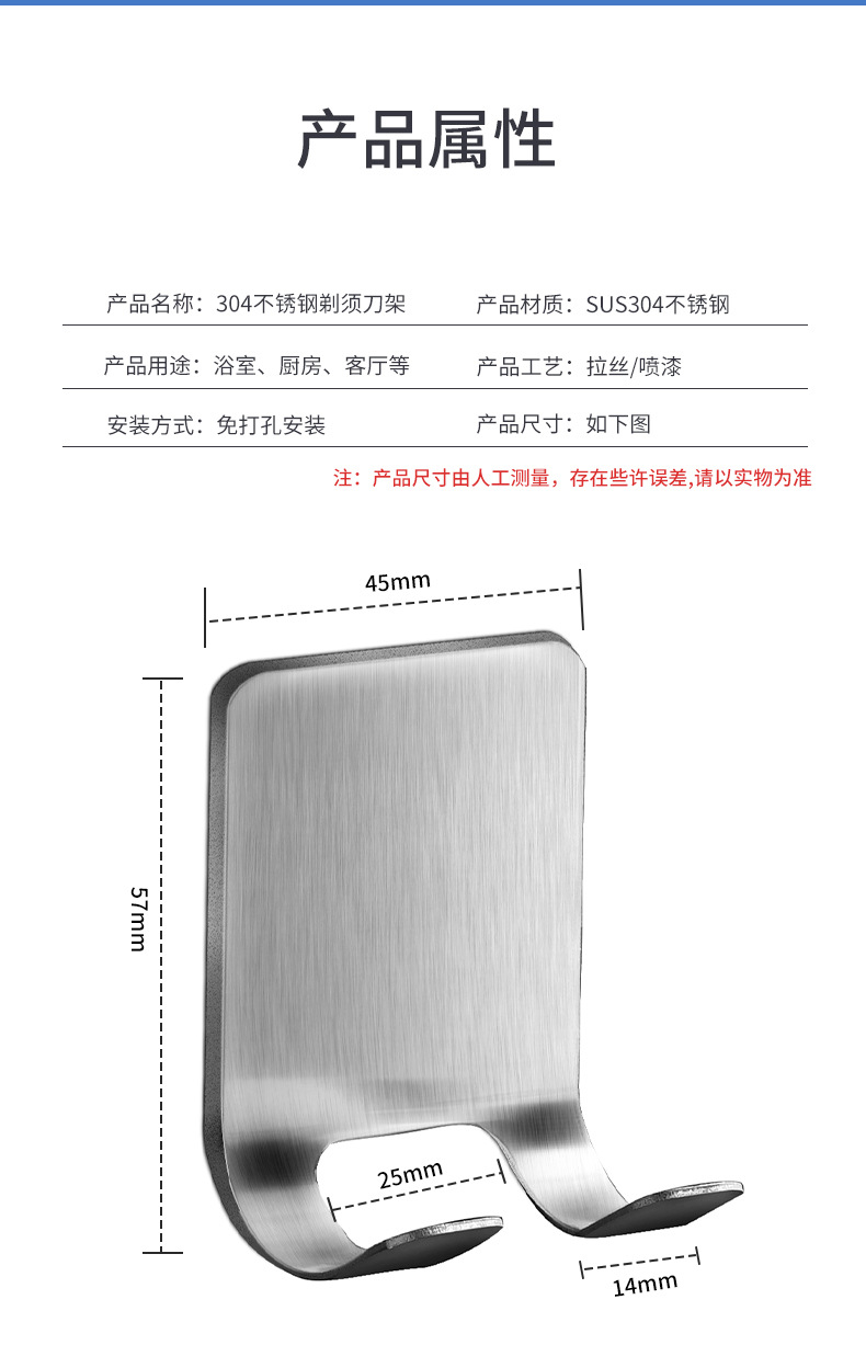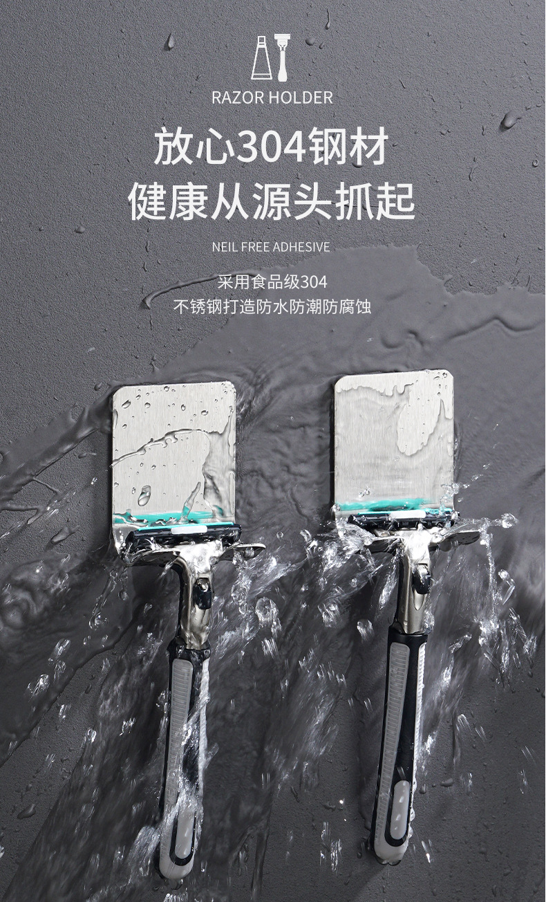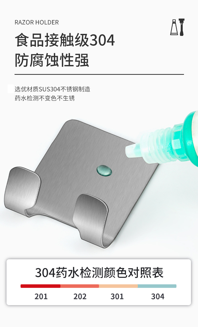 ステンレスの手動髭剃りホルダーのフックは穴を開けないでください。