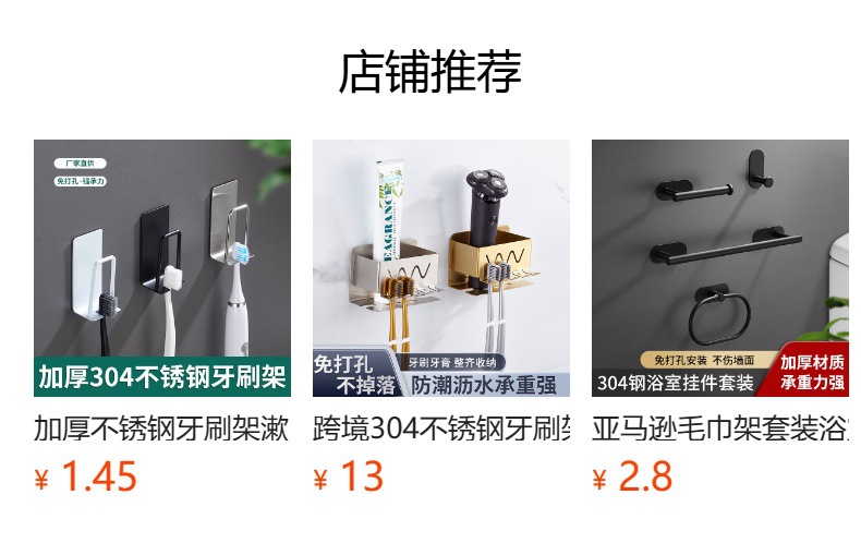 穴なし304ステンレスフックフックフック浴室キッチンフック壁ストラップメーカー卸売り