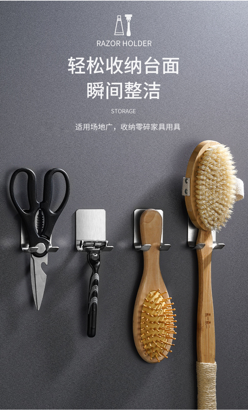ステンレス鋼かみそりラックパンチフリー収納ラック多機能浴室壁掛けプラグフックかみそりホルダー