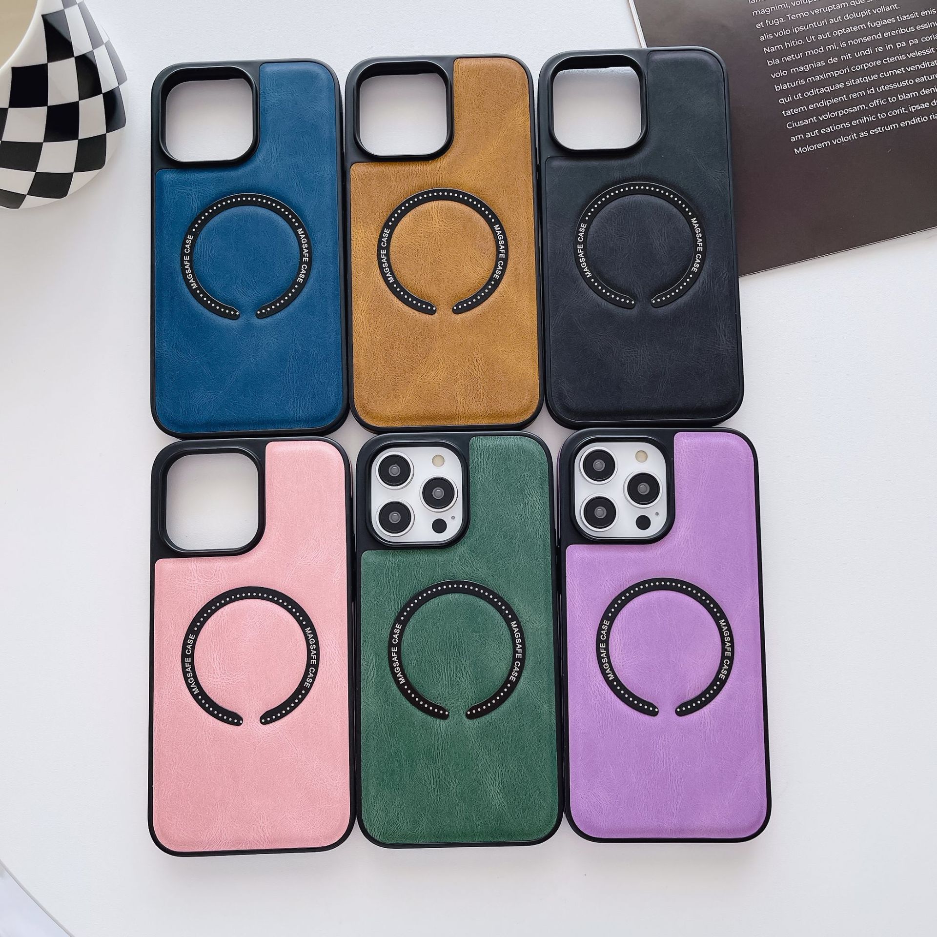 Apple 15 Pro Max用ライチ柄レザー磁気吸着スマホケース iPhone 11/12 ビジネス向け 指紋防止